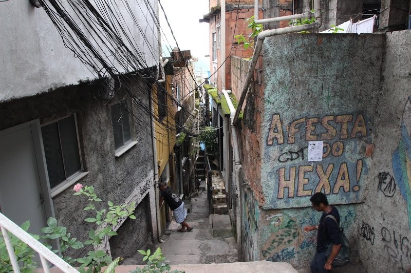 Viimasel päeval leidis hea sõber Jaan kohaliku giidi (kes elab ka ise favelas) ja käisime tutvumas mäenõlvadel kulgeva eluga. Buss viis meid mäeküljele ja sealt hakkasime juba jalgsi mööda kitsaid tänavaid laskuma. Sotsiaalne kihistumine torkas silma igal sammul. Kõige vaesemad on kõige kõrgemal, mida allapoole liikuda, seda korralikumaks hakkavad muutuma eluasemed.