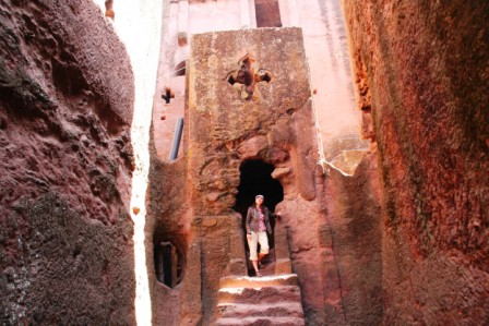 Kõige muljetavaldavam neist on kahtlemata Bete Giyorgis – ehk Püha Georgi kirik. Kujult täiesti sümmeetriline, ristina maa sisse raiutud. Ülevalt vaadates avaneb nagu arhitektuuriline illusioon – kivisse lõigatud 15-meetrine risti kuju, mis näib samaaegselt nii ürgne kui futuristlik. Laskusime mööda kitsast kaljulõhet trepist alla, kiriku jalamile ja sisenesime hämarasse, jahedasse ruumi, mille seinu katsid sajandite vanused tahvlid. Sellel ajal olid parajasti mungad seal poolsosinal oma palveid sosistamas. Väga müstiline tunne!