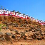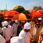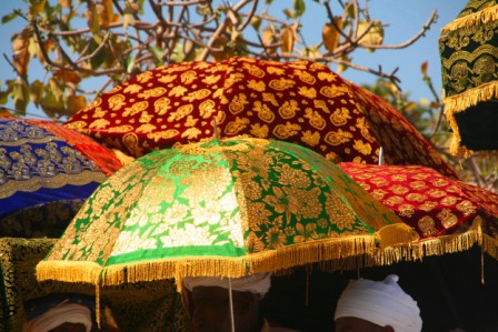 Nägime uhkeid rongkäike, kus preestrid kandsid templite altaritelt välja pühad käsulaudade koopiad, millele järgnesid laulvad, pasunat puhuvad ja tantsivad rahvahulgad. Vett pühitseti ja rahvas sai sümboolse ristimise osaliseks. See kõik kokku oli justkui üks liikuv kunstinäitus: käsulaudade koopiaid olid mässitud kirevatesse sametisse ja siidi meenutavatesse kangastesse, preestrite peade kohal lehvisid tikanditega vihmavarjud, igas vikerkaarevärvis. Tantsivad trummimehed, pasunapuhujad ja valgeis rüüdes palverändurid kulgesid lauldes ja hõigates läbi tolmuse õhu, mis oli pühitsetud viiruki ja mürriga. Kogu linn kihas – palverändurid, mungad, turistid ja uudishimulikud lapsed.