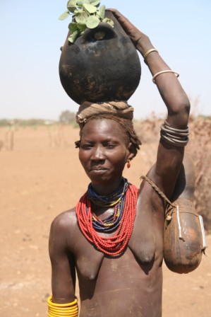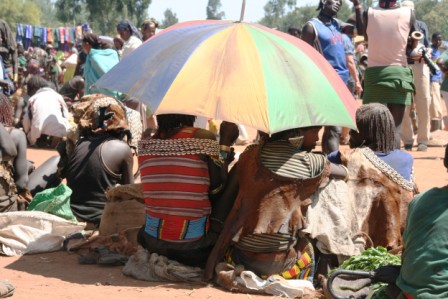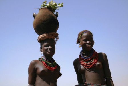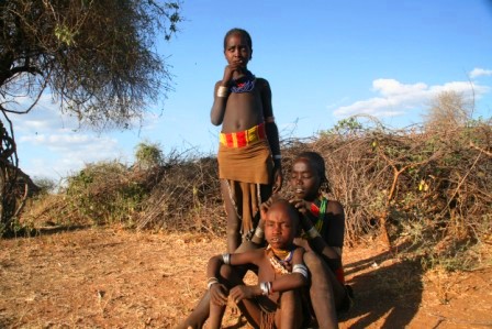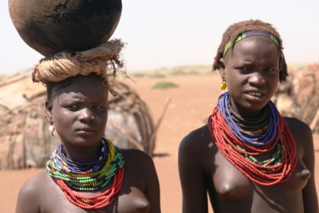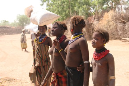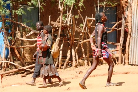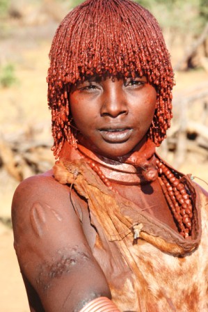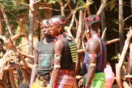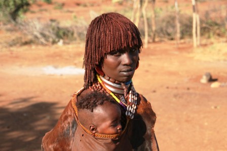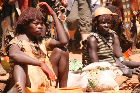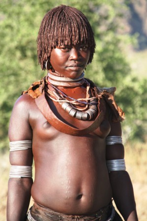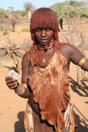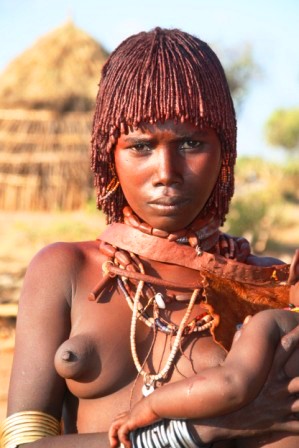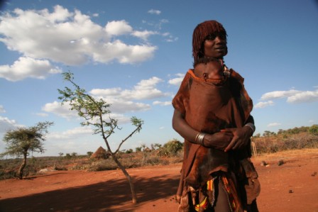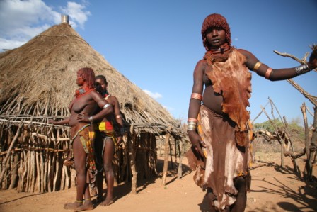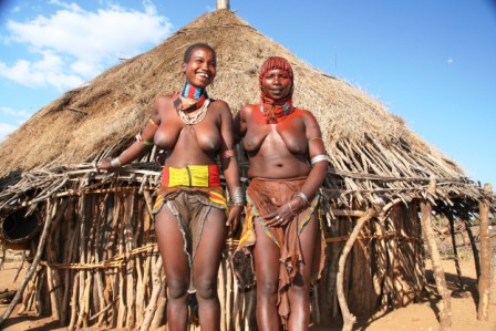Kui olime mõne tunni autoga edasi loksunud, hakkas maastik justkui vaikselt kanalit vahetama. Umbes nagu National Geographic, aga ilma reklaamipausideta. Olime jõudnud hamerite aladele – piirkonda, kus aeg liigub omasoodu. Hamerite naistel on valdavalt puusadele seotud punakaspruun kitsenahk. Seelik on sabaga. Turupäevadel vahetatakse naturaalmajanduslik kraam plastmasspärlite vastu, tänu sellele on seelikud ka tikandeid täis. Rinnad on naise ehe ja seda hamerid teavad – kõik on uljalt oma rindu eksponeerimas.