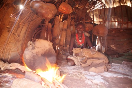 Päike hakkas üha madalamale laskuma ja peagi oli eemal põõsastes näha elavat liikumist – mehed olid hakanud karja koju ajama. Esimesed kitsed ilmusid põõsaste vahelt nähtavale ja liikusid taltsalt küla poole. Naised olid potid tulele pannud ja asunud meestele meie mõistes suhteliselt tavatut õhtusööki – putru – keetma.