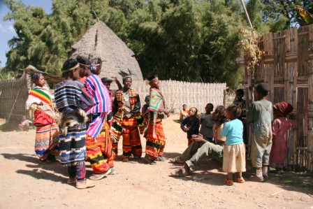Külla jõudes võttis meid vastu kirju seltskond, kes oli üllatavalt üksmeelselt ära õppinud üheainsa sõna – „birr!“ (Etioopia rahaühik). Ei olnud kahtlustki, mida see tähendas. Iga pildi eest tuli kohe modelli tasustada, nagu väikesel külaturul, kus naeratuse hind on täpselt kaks birri. Mõni laps surus end pildile kas või nina püsti ajades, mõni memm oskas juba ise käega fotoaparaadi poole osutada ja hinnasõrme näidata. Me polnud kaugeltki esimesed valged, kes selles mängus osalesid.
