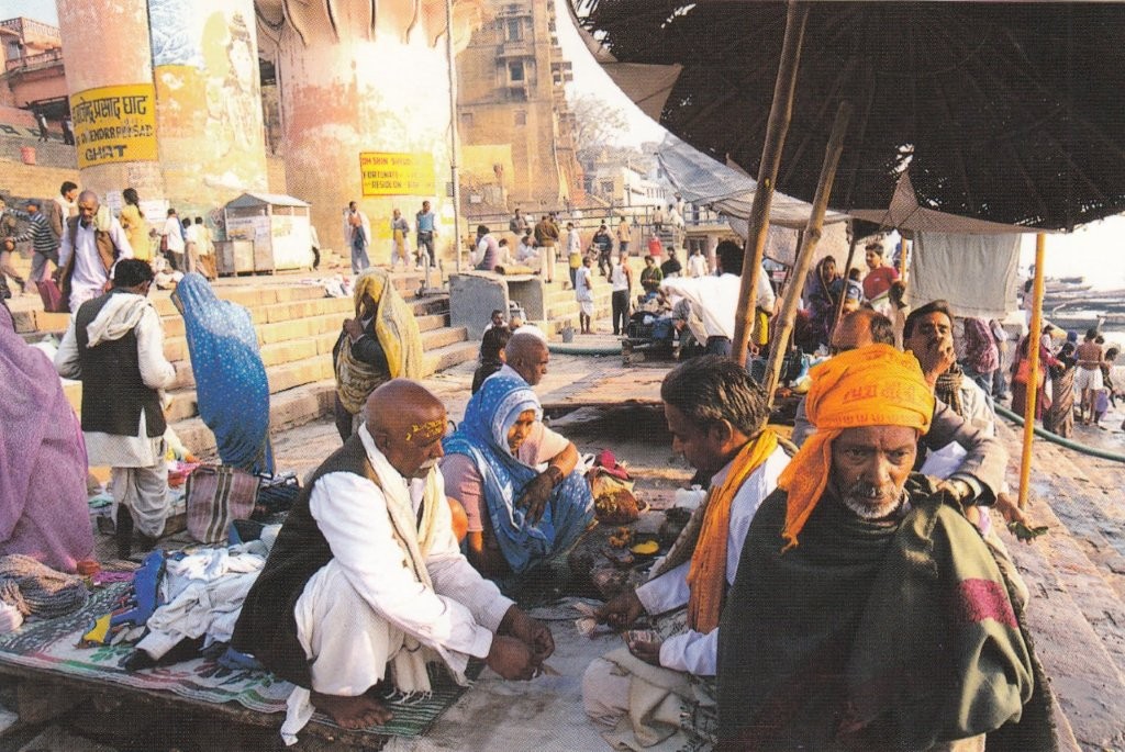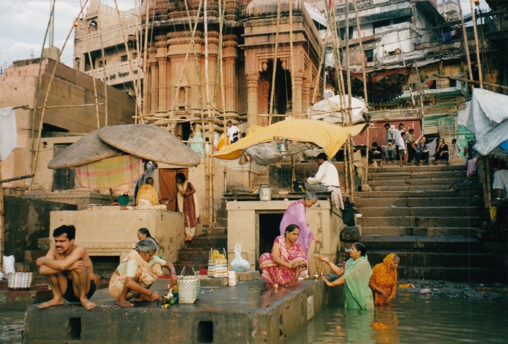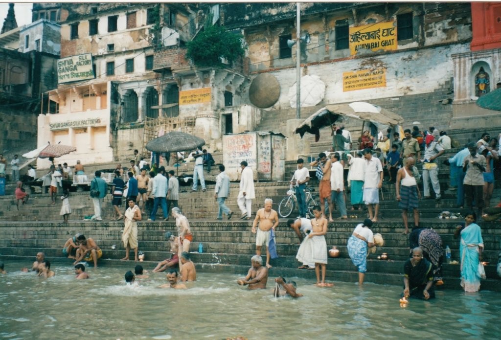 Järgmisel päeval varahommikul läksime paadisillale. Õhk oli veel udune ja niiske, kuid trepid olid juba rahvast täis. Inimesed kummardusid vee kohale, et pesta oma nägu ja hambaid, kasta riideid, tervitada tõusvat päikest või lihtsalt istuda ja palvetada. Mõni süütas väikese savilambi, mille asetas koos lilleõitega vette – see oli ohvriand Gangale, püha jõejumalannale, keda peetakse taevast maa peale saadetuks.