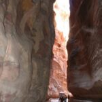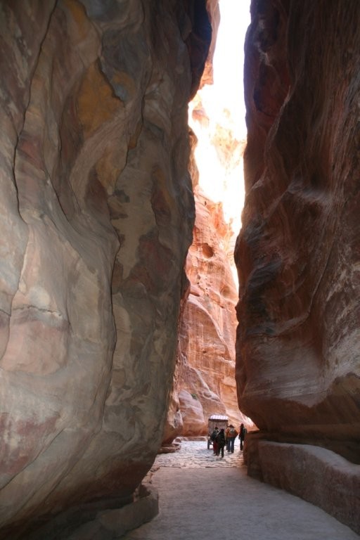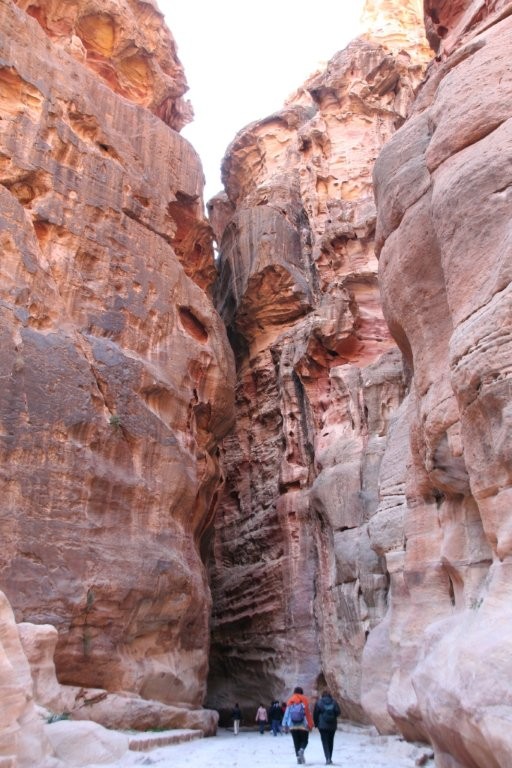 Tunnistame ausalt – enne siia tulekut teadsime Petrast häbiväärselt vähe. See, mida siin nägime, oli samavõrd kaalukas ja suursugune kui Angkor Wat Kambodžas või Machu Picchu Peruus. Muljetavaldav oli juba pelgalt linna sisenemine kitsal teel läbi kõrgete kaljumassiivide. Mida enam edasi liikusime, seda kõrgemaks kasvasid kaljuseinad meie kohal, ulatudes kohati sajakonna meetri kõrgusele. Teerada vonkles lõputuna näivate kaljude vahel salapäraselt, iga järgmise pöörde taga oli uus ja veelgi võimsam, vaat et taevani kõrguv kaljusein.