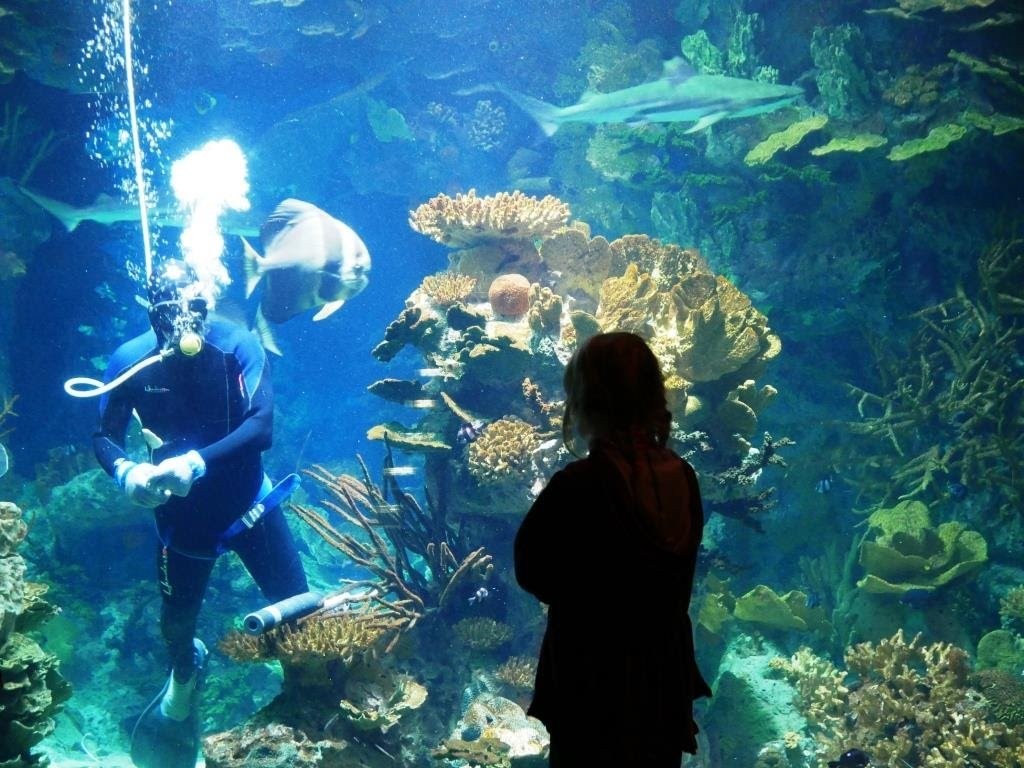 Kuveidi teaduskeskus osutus tõeliseks lastemagnetiks. Suur akvaarium tõmbas kohe tähelepanu – siin sai näha kõiki peamisi Pärsia (või siis Araabia) lahes elavaid vee-elukaid, sealhulgas ka haisid. Olime oma külastuse sättinud just haide toitmisajale ning see oli Laurale kindlasti kogu Kuveidi kõige põnevam vaatepilt – silmad pärani, põsed õhinast punased.