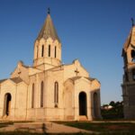 Linna keskuses kõrgub üks väheseid renoveeritud ehitisi – Ghazanchetsotsi kirik, kus aserid sõja ajal oma kõige kallimat varandust ehk laskemoona hoidsid. Nad teadsid suurepäraselt, et ainus, mida armeenlased kindlasti ei pommita, on nende oma kirik.
