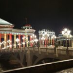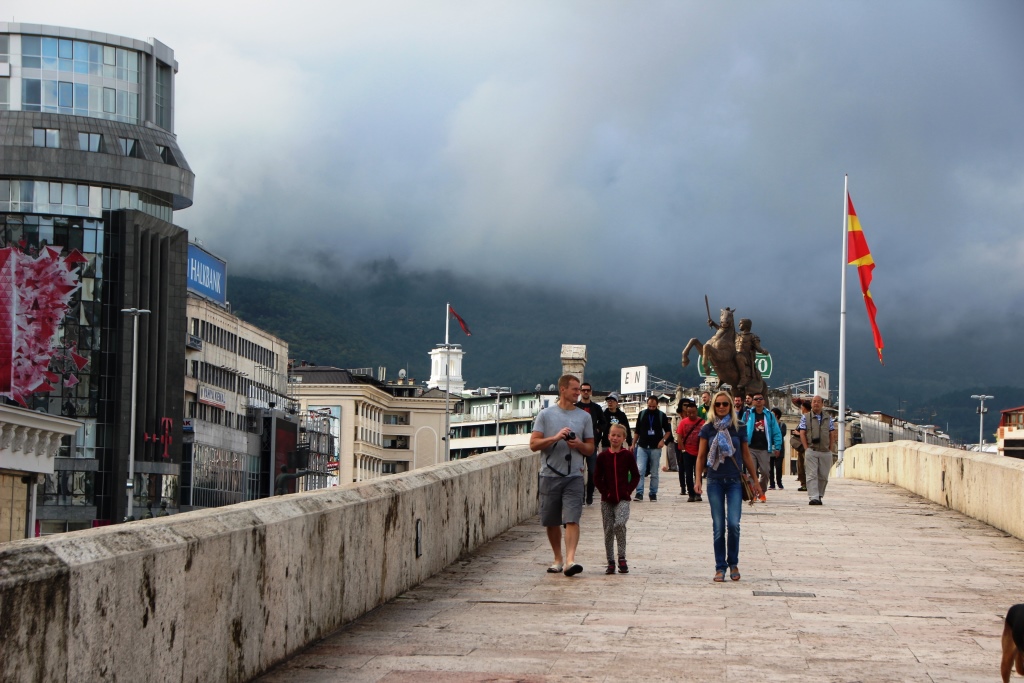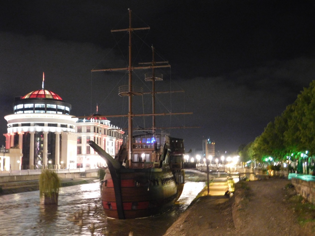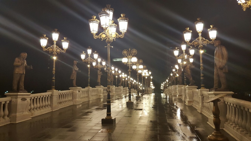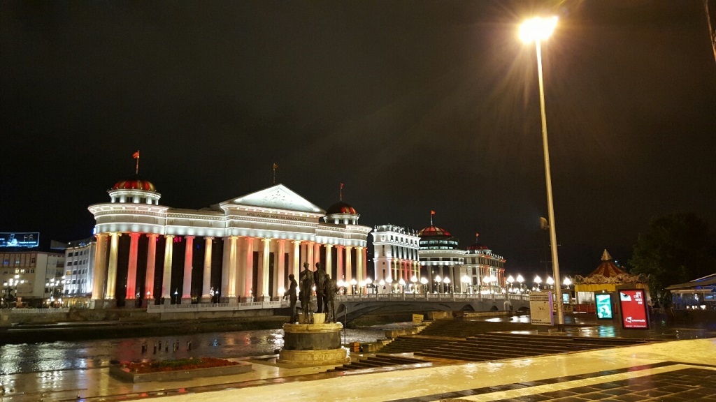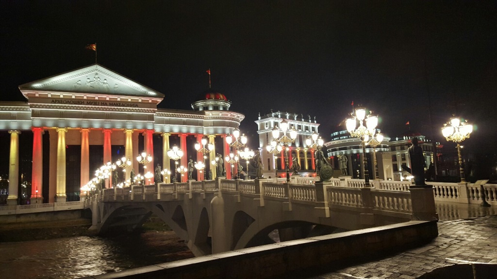 Pärale jõudes selgus, et Makedoonia pealinna Skopje kesklinn on täis tõeliselt pompöösseid ehitisi. Võtsime hilisõhtuses linnas ringivaatamiseks takso. Juhi sõnul oli see lausa naeruväärne, kuidas valitsus priiskavaid luksushooneid kesklinna rajab, arvestamata kohalike tegelikku elustandardit ja -stiili. Meile avanes rabav vaatepilt, mis meenutas aastatetagust saabumist Las Vegasesse, kus pärast tunde kestvat ja lõputuna näivat sõitu kerkib su silme ette ühtäkki tuledest vilkuv stiilipuhas irreaalsus.