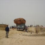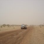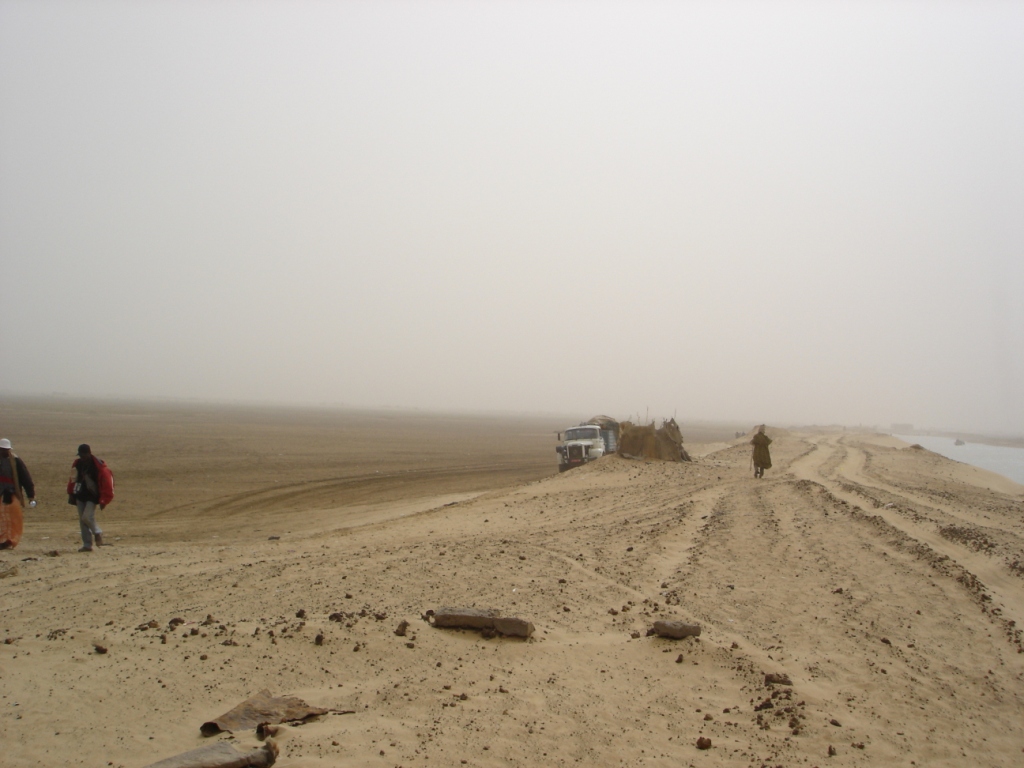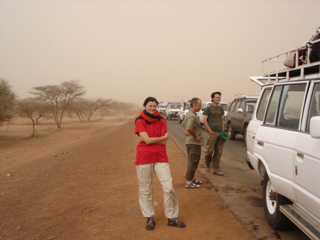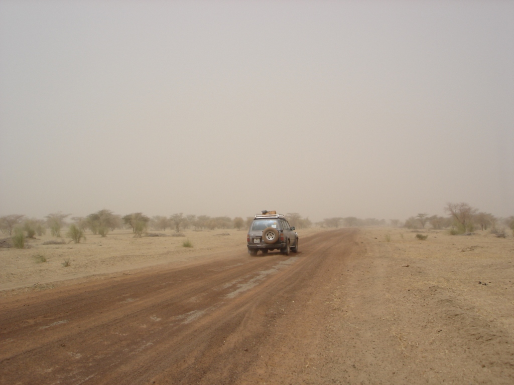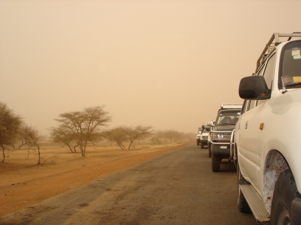 Peamised liikumisvahendid linnas olid eeslid ja mootorrattad. Ainukesed autod, mis siin ülepea liikuda saavad, on spetsiaalse liivas sõitmise varustusega maasturid. Linnas pidi kuuldavasti juba olema ka üks takso, kuid meie külaskäigu ajal oli see kahjuks katki ja nii jäi meil see luksus testimata. Juhtumisi oli siin praegu kõrbelise liivatormi Harmattani aeg ja see tähendas, et liiva edasi kandev kõrbetuul varjas ära isegi päikese.
