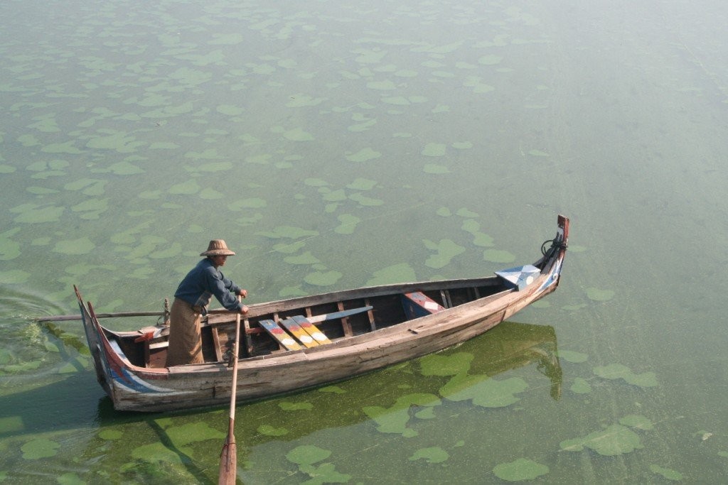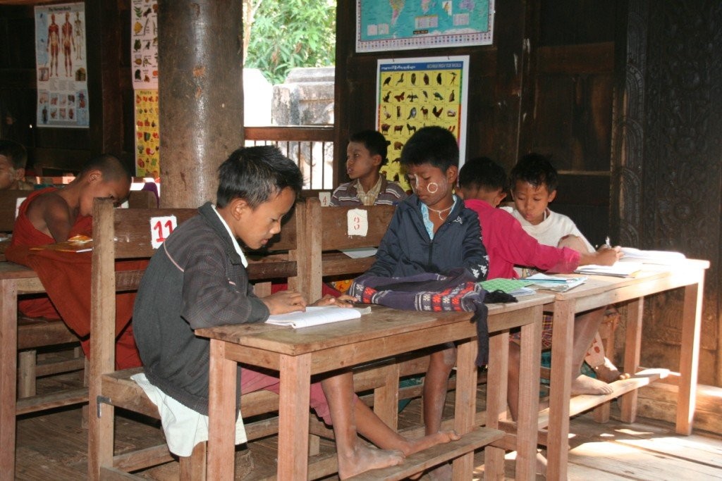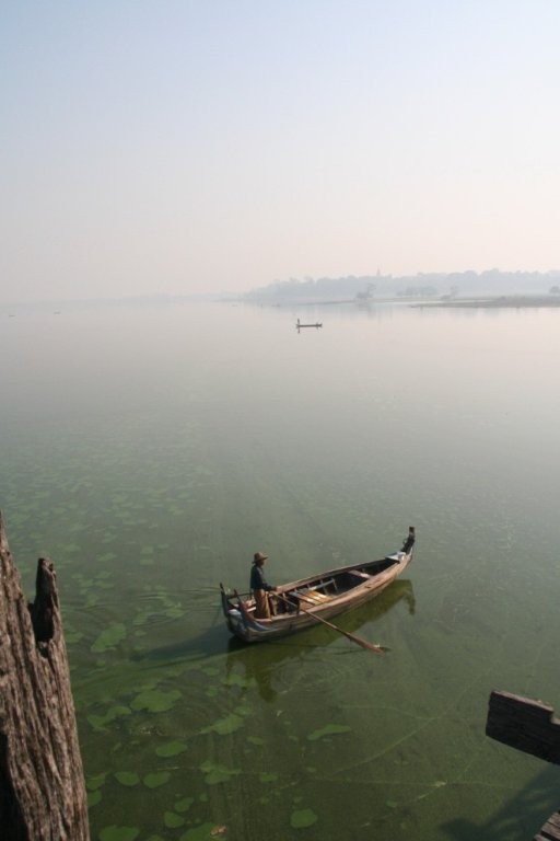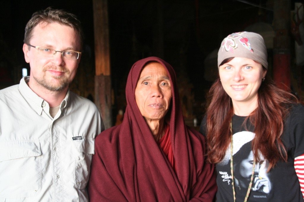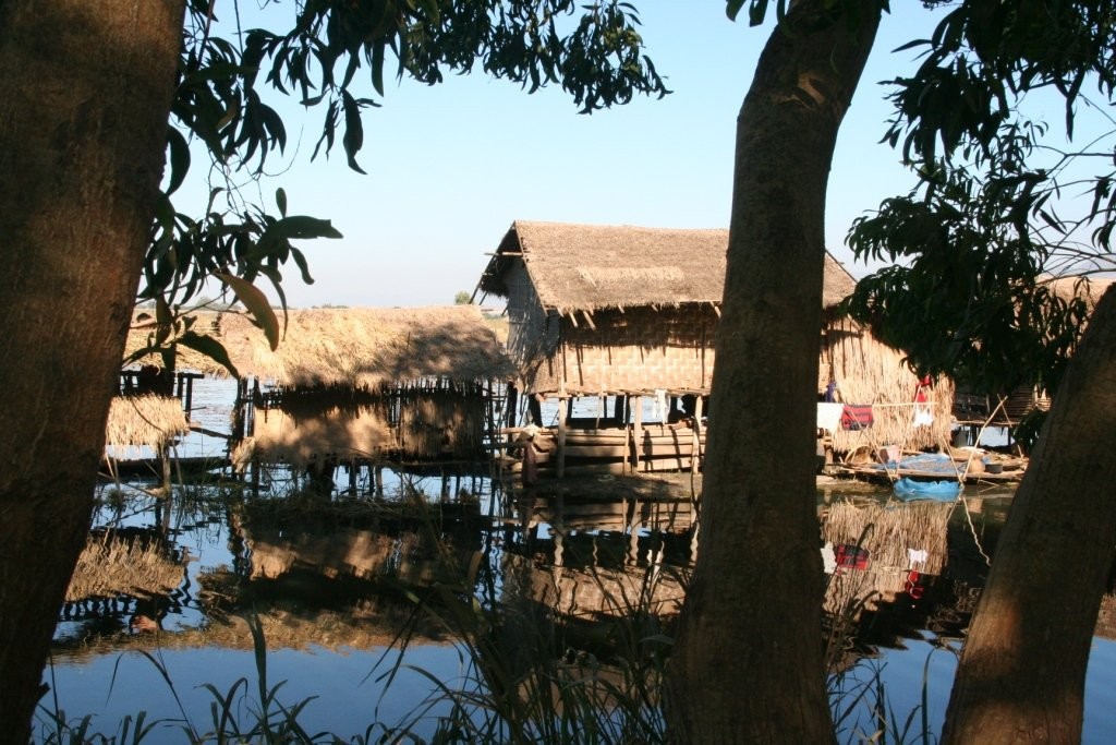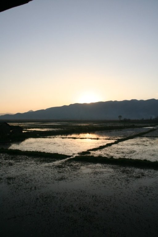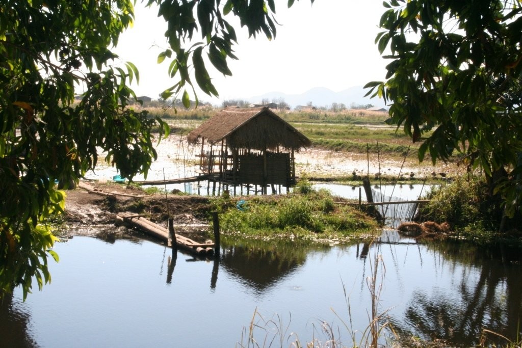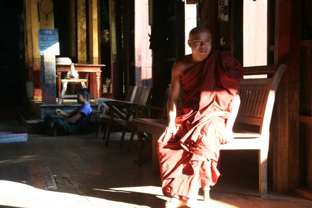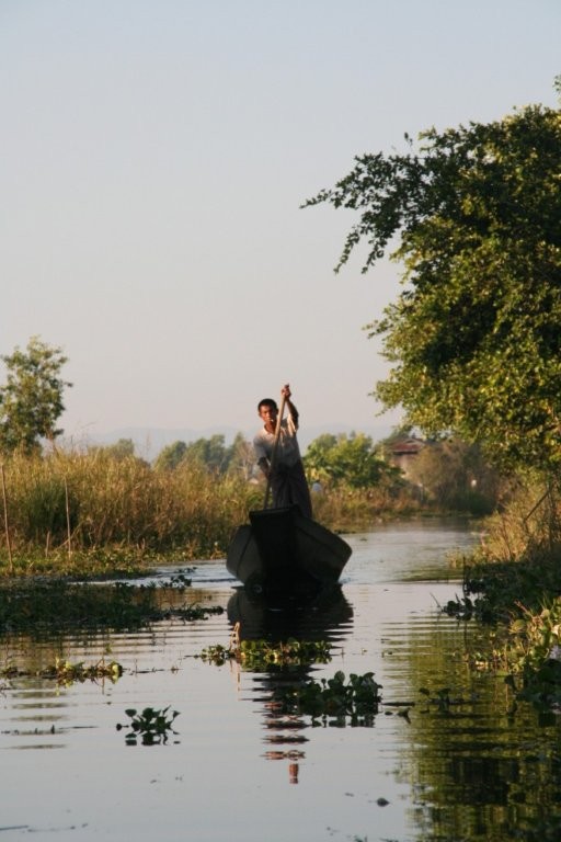 Vana aasta viimasel õhtul sõitsime kanuuga mööda kitsaid sisekanaleid ja jõudsime täpipealt päikeseloojanguks keset hõbedasi riisipõlde teivastel seisva kloostrini. Eemalt vaadates tühjana paistnud klooster oli siiski koduks ühele mungale, kes oli ütlemata rõõmus meie saabumise üle. Pühamees oli 68-aastane ja veetnud siinses kloostris juba 28 aastat. Vestlesime temaga, kuni väljas pimedaks läks. Soovisime talle head vana aasta lõppu ja läksime ööbima järve lähistel olevasse Nyaungshwe külakesse.