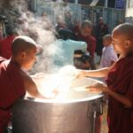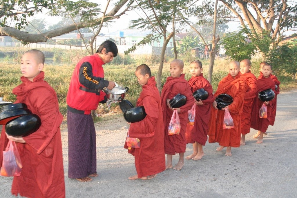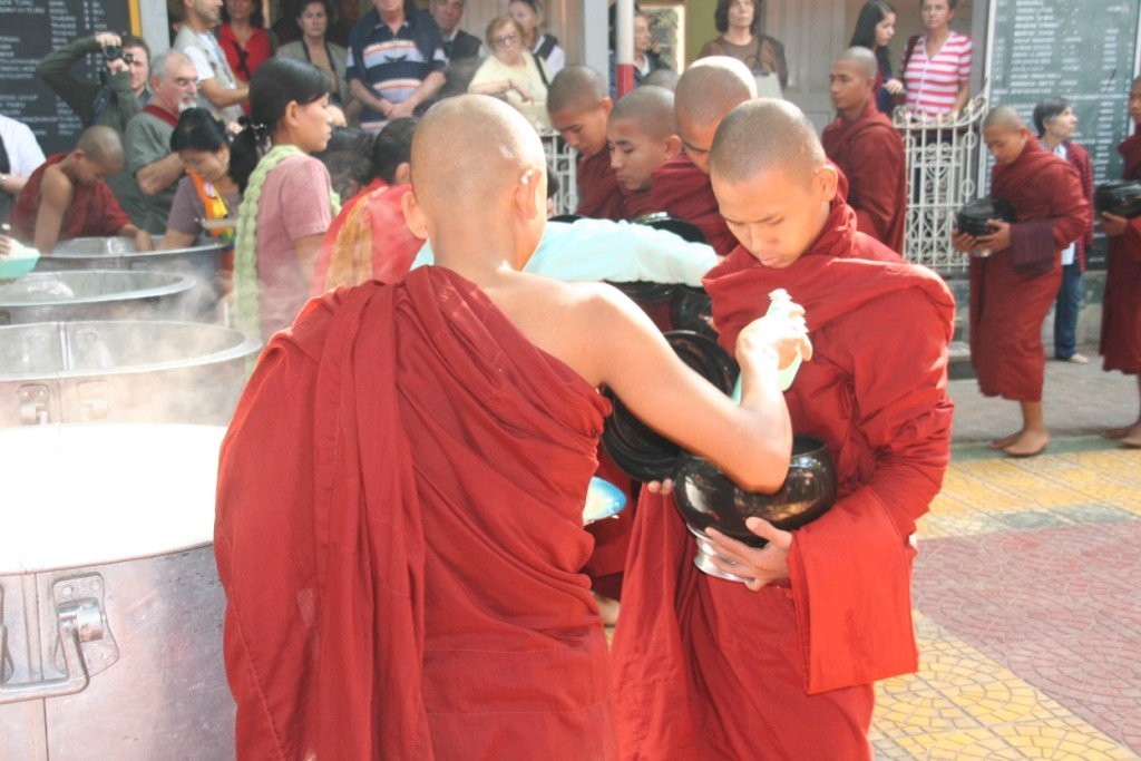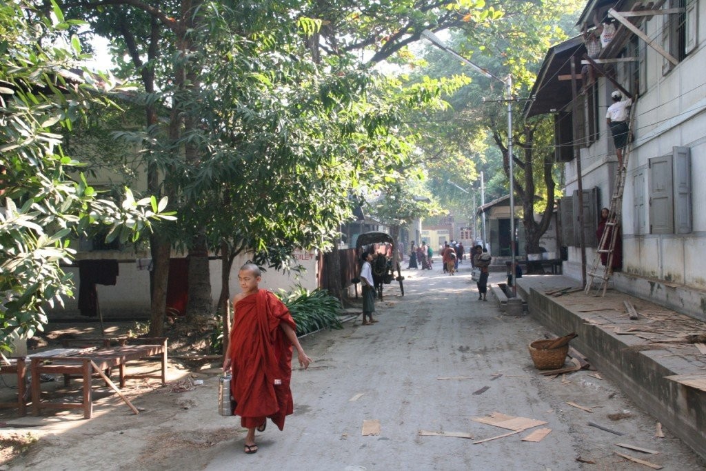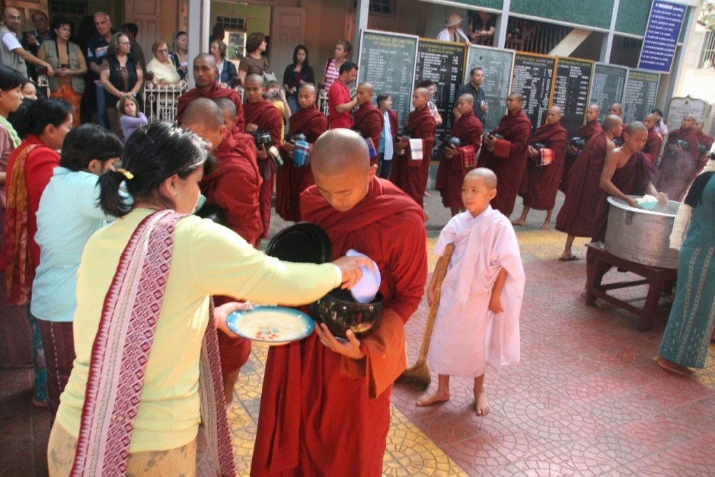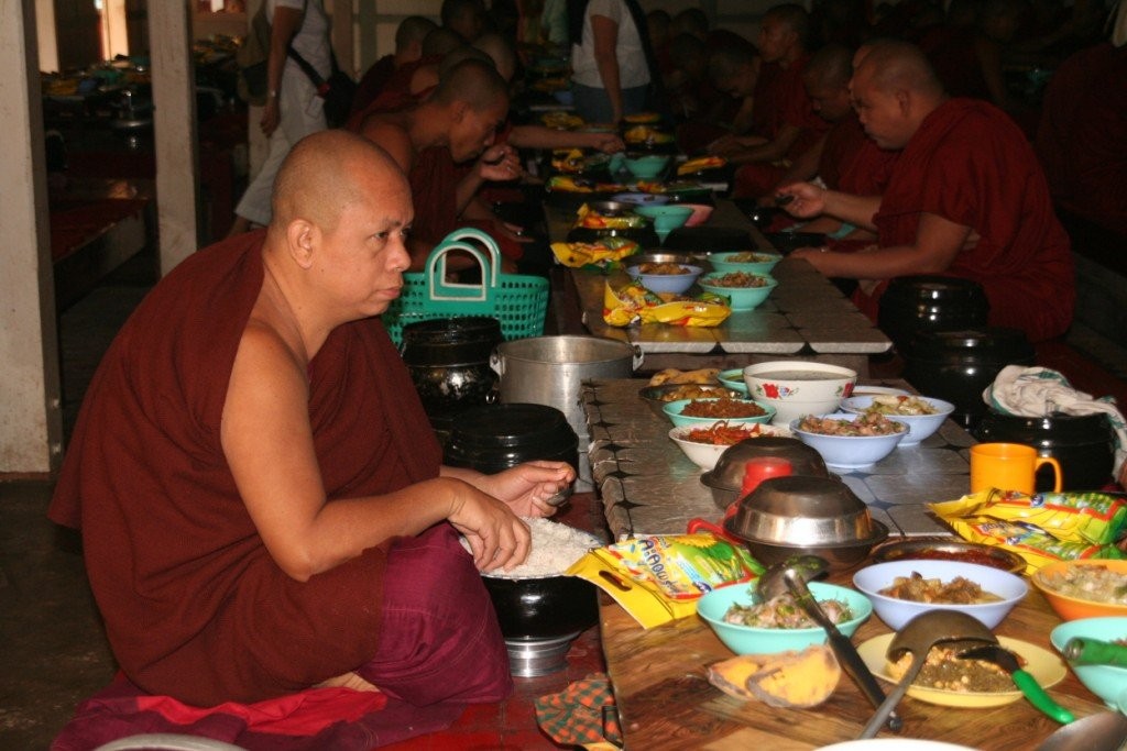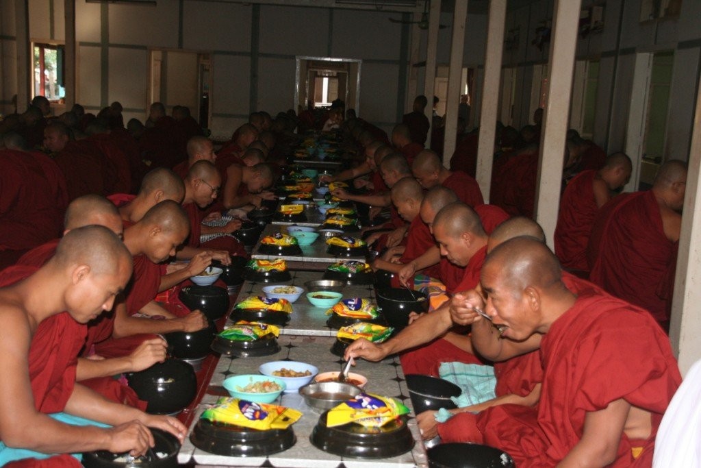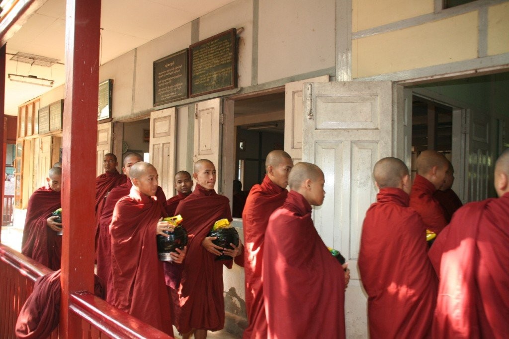 Surematuse linna Amarapura lähistel käisime Mahagandhayon Kyaungi mungakloostris. Väga mõjus vaatepilt avanes munkade ennelõunasele söögikorrale minekut jälgides – tuhanded mungad hiirvaikselt rivis liikumas, igaühel käes anum toidu jaoks. See on munkadele ühtlasi viimane söögikord päevas.