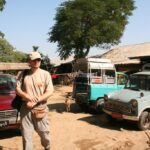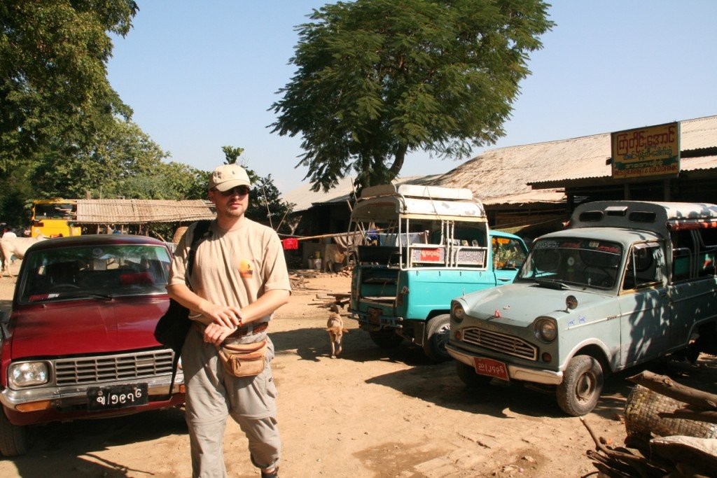 Lennujaamas puudus igasugune turismiinfo. Hiina Birma saatkonnast saadud turismibrošüüri ei soovinud me kasutada, sest see sisaldas vaid riiklike hotelle, mis ei sobinud kokku meie sooviga vältida valitsusele kuuluvaid ettevõtteid, sest nõnda oleksime toetanud huntakorda. Soovisime toeks olla vaid kohalikele eraettevõtetele. Lennujaamahoonest väljudes leidsime siiski suhteliselt kiiresti autot meenutava sõiduvahendi ja palusime end kesklinna sõidutada. Tunnine teekond linna suunas oli vägagi kirgastav, omamoodi ajamatk kolm sajandit tagasi.