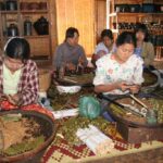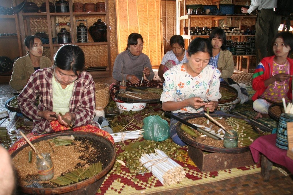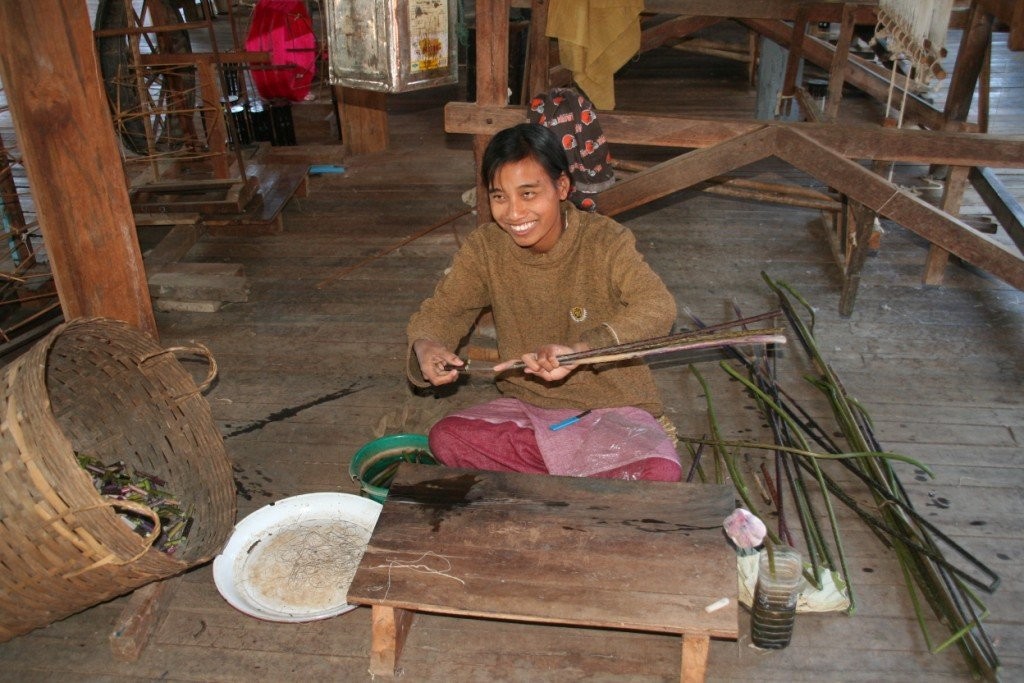 Paadiga mööda järve liikudes ei pääse ka parima tahtmise korral mööda kõikvõimalikest käsitöö müügikohtadest. Eriline on siinsete naiste oskus kududa kangast lootoselillede varte sees olevast venivast niiditaolisest sasist. Moodustub kotiriide sarnane tõeline ökokangas.