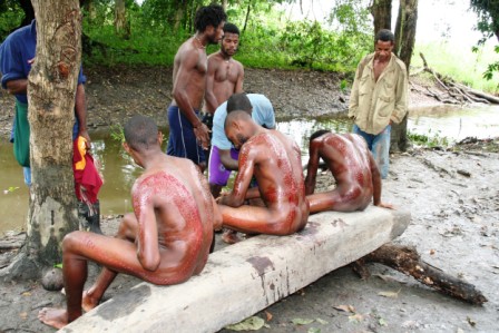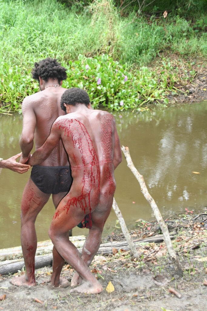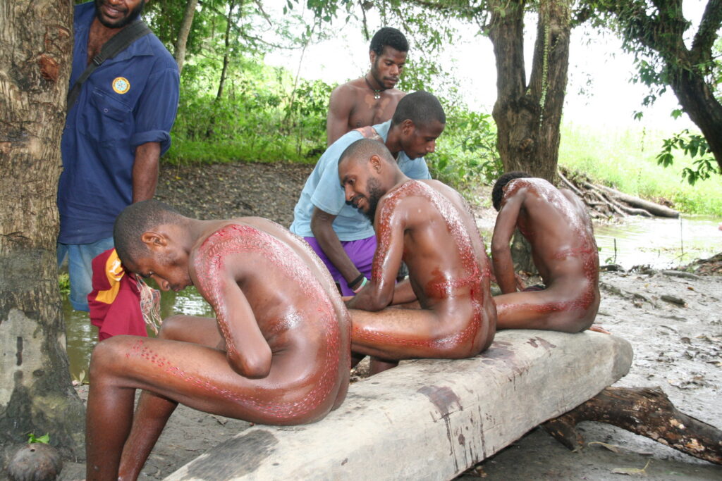 Keskkond ei olnud meie mõistes kindlasti hügieeniline, rääkimata protseduuri läbiviimisest. Alasti noored suruti palkidele lamama ja lõiked sooritati žiletiteraga, mida veel kümmekond aastat tagasi asendas tömp bambuseteravik. Selleks, et veritseva kihi alt nahka näha, puhastati seda aeg-ajalt määrdunud käterätikuga. Lõikamise protseduur kestis paar tundi, mille järel saabus protsessi kõige valulikum osa – vette heitmine ja mudase veega haavade hõõrumine.