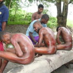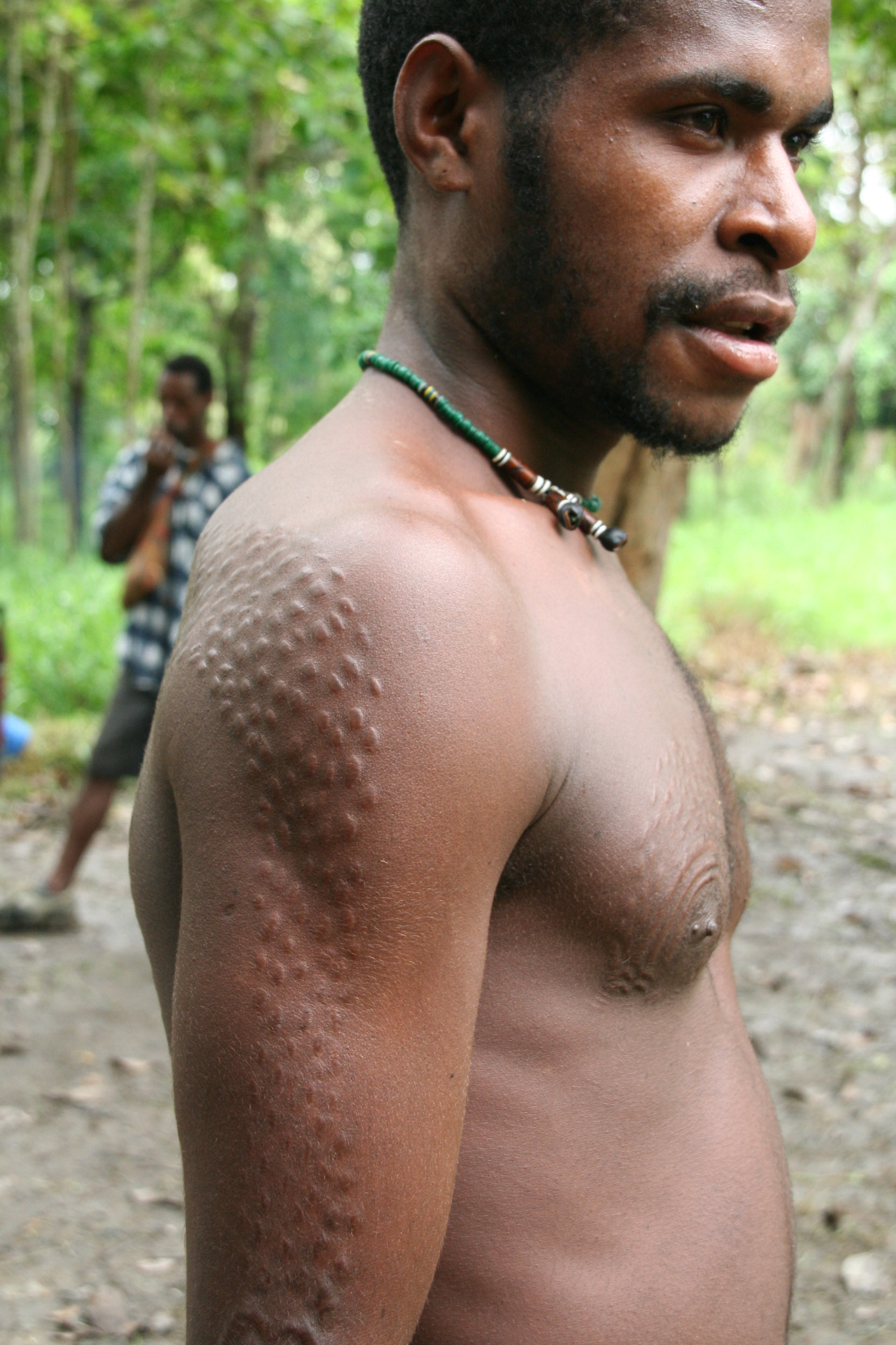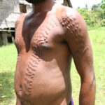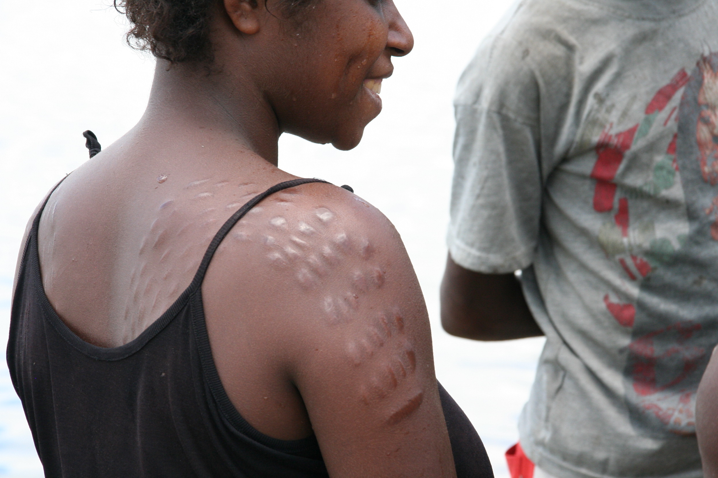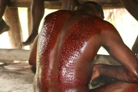 Seejärel kanti haavadele õli ja tagatipuks veel muda. Just muda on see, mille tulemusel nahk ärritub ja tekitab lõikearmide kohale reljeefse mustri. Vapramad taluvad kõike vaikides, nõrgemad väljendavad ennast häälekalt. Mida rohkem oigeid, seda suurem hukkamõist, mida väljendati rõhutatult üksmeelsete naerupuhangutega.