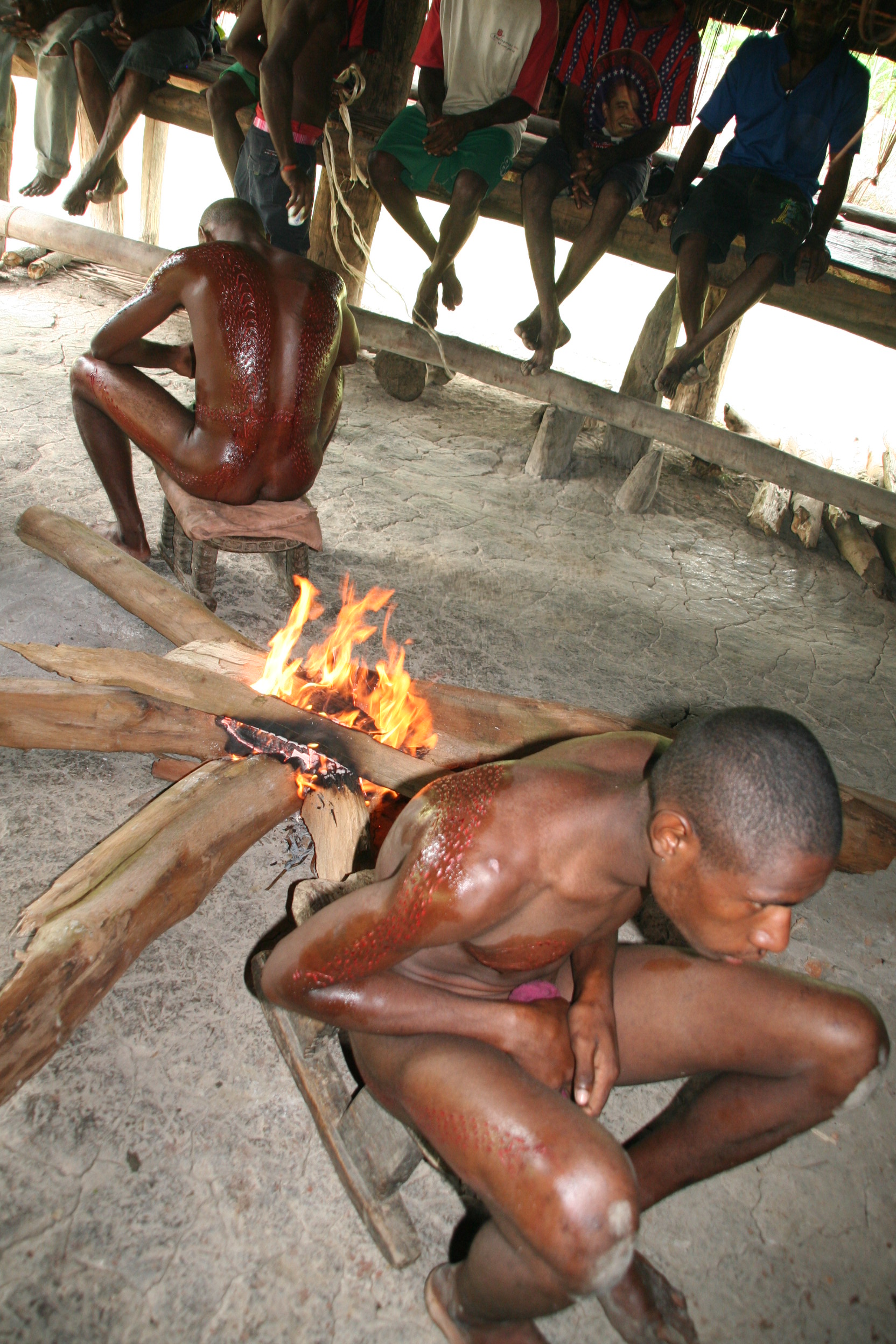 Lõikumine üle elatud, talutati mehed Haus Tambarani, kus nad asetati trummihelide saatel pidulikult lõkke äärde istuma, sest kuumus aitab leevendada valu ja soodustab haavade kinnikasvamist.