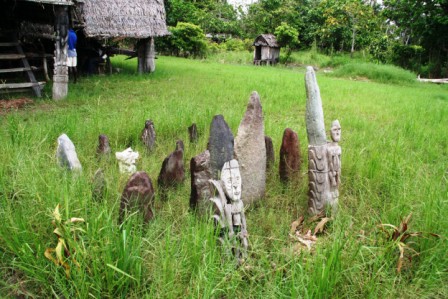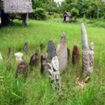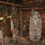 Eriti sümboolsed on kivikirved, mis veel paarkümmend aastat tagasi olid täisväärtuslikud tööriistad igapäevase töö tegemisel ja jahipidamisel. Peaküttimise meenutusena, mis alles eelmise sajandi alguses lõpetati, on nii mõneski kohas veel alles verekivid, kuhu vastaste pead trofeedena torgati.
