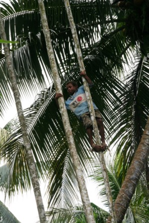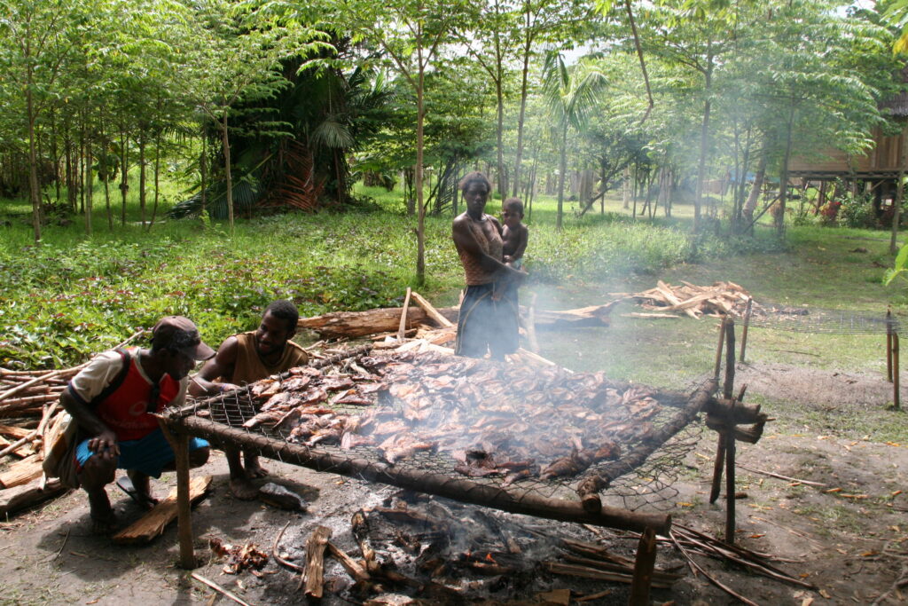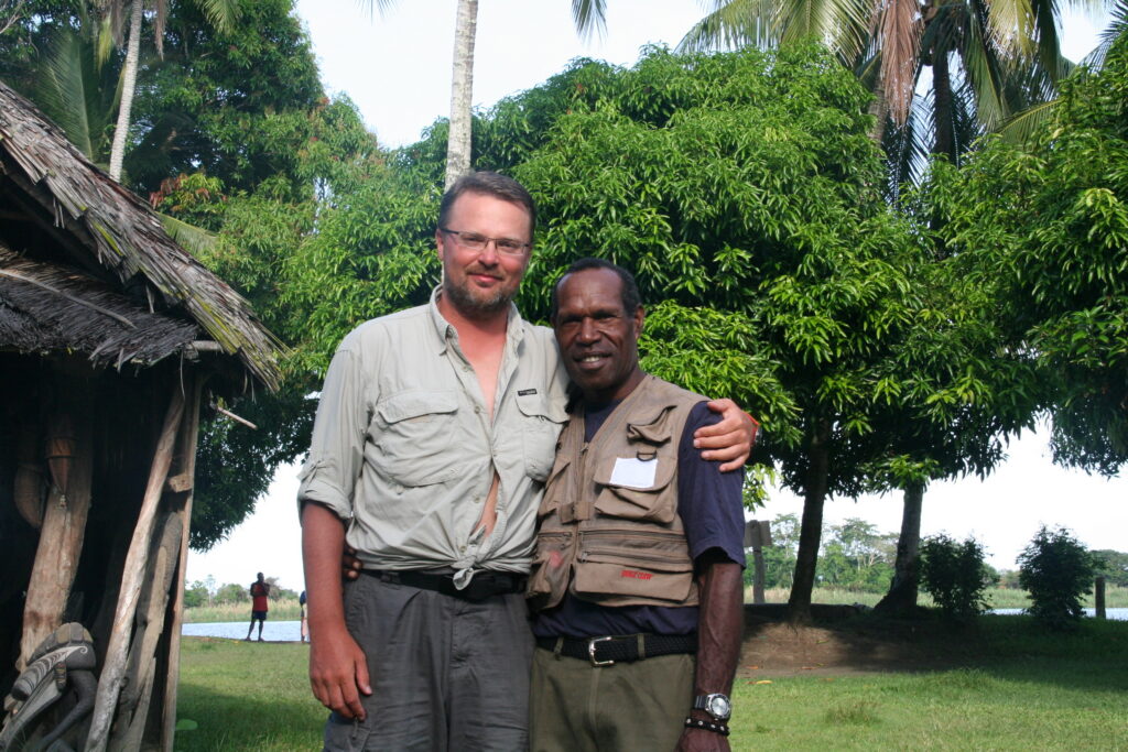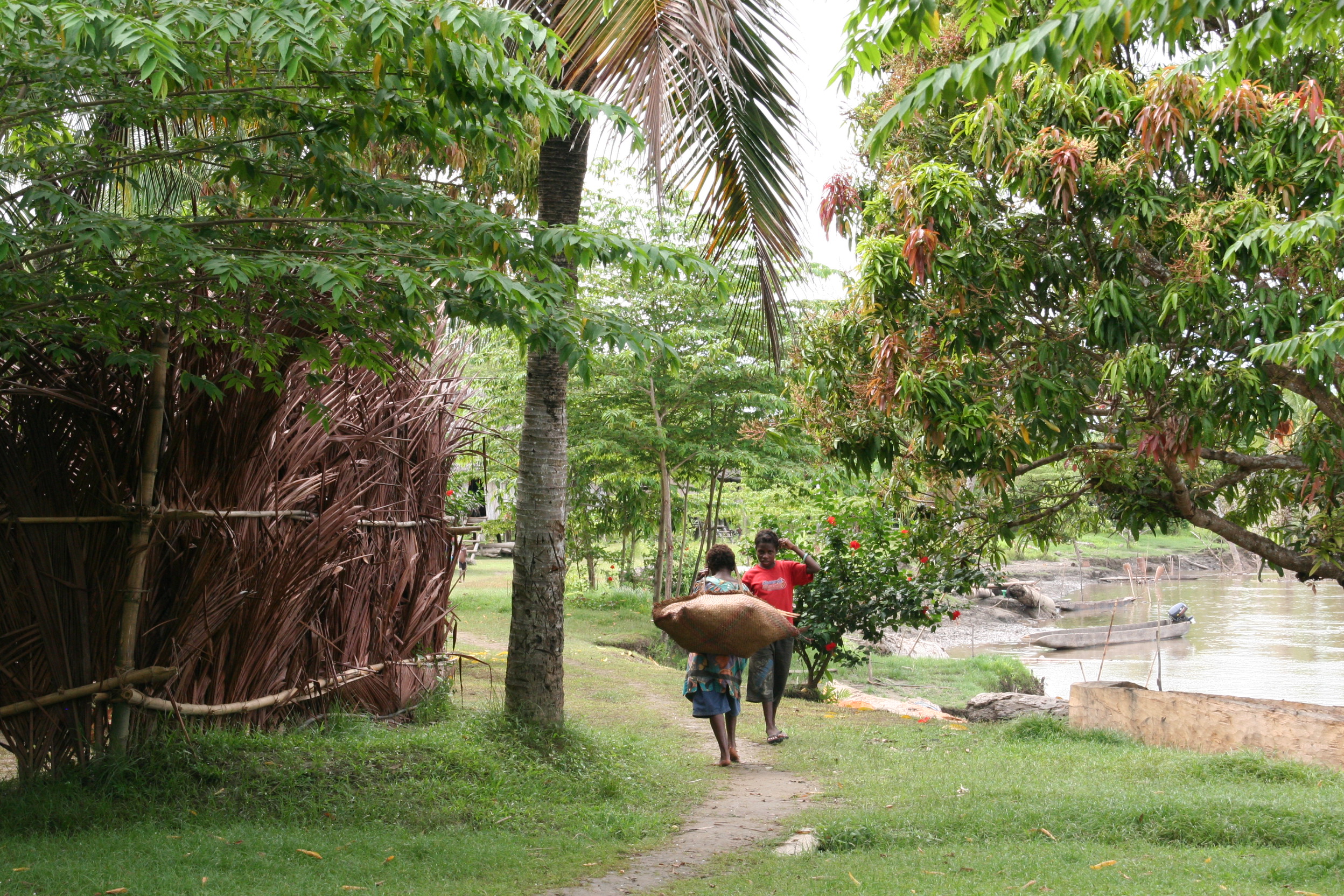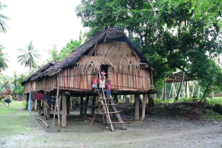 Seiklesime kohalike hulgas viis päeva. Liikusime ehedas ühepuukanuus ja jagasime meie giidi Cyriliga tema koduaset. See oli tüüpiline paari meetri kõrgustele vaiadele ehitatud hütt bambusmattidest seinte ja saagopalmi lehtedest katusega. Majas oli kaks tuba – pererahva magamisruum ja üks suur eesruum. Magasime eesruumis madratsitel sääsevõrgu all. Ääremärkusena tasub ehk mainimist, et samas ruumis tegi peretütar nii meile kui ka kogu perele savikausile laotud tuleasemel iga päev süüa. Korstnat sel tare-tarekesel ei olnud ja suits otsis inimeste vahelt ise teed majast väljumiseks, meenutades vägisi meie suitsutaresid mõned sajandid tagasi. Toit oli väga tagasihoidlik, valdavalt bataat, saagopalmijahust tehtud leib ja praetud kala. Maitset andsid juurde Wewakist kaasa ostetud konservid ja, nagu Marko väga värvikalt nentis, ei ole maitsetut sööki, vaid on vähe ketšupit.