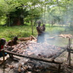 Varahommikul külastasime Palambei küla. Jõudsime siia pärale pärast kolmetunnist ööpimeduses kanuutamist ja pooletunnist jalgsimatka läbi vihmametsa. Oli suur juhus, et just meie Sepiku matka ajal viidi siin piirkonnas läbi selle aasta esimest initsieerimist kolme meheikka jõudva metsaelanikuga. Initsiatsiooni läbiviimise koht asus mõnisada meetrit külast eemal ja siia võisid tulla vaid initsiatsiooni läbinud mehed… ja valged turistid.