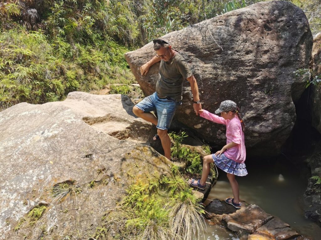 Laurale on see siiski pettumuseks, sest vesi on liiga külm, põhi kaljune ning arvestades tema haiget jalga, siin ujuda veel ei saa. Teel tagasi näitab giid meile ka kohalike bara hõimude hauakambreid, mis on looduslikes mägikoobastes. See on eriti iseloomulik just Isalo rahvuspargile, mis on barade püha territoorium.