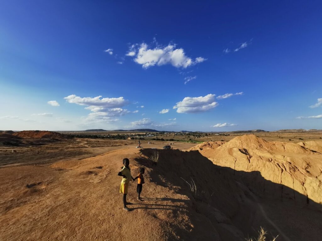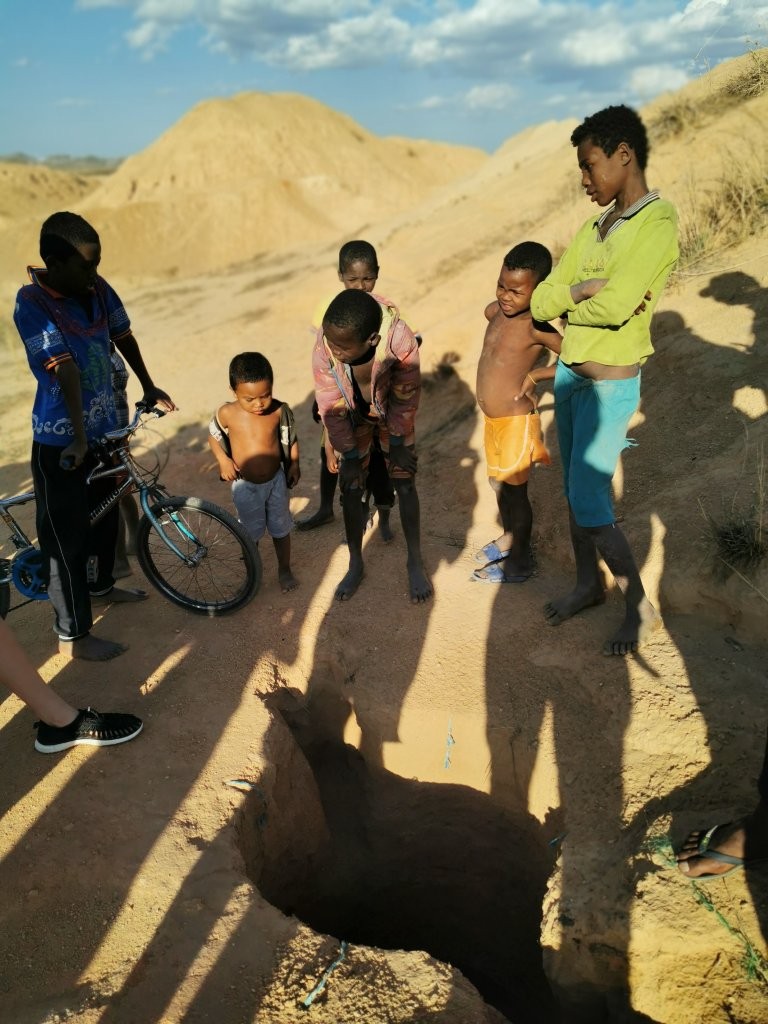 Tööohutuseeskirjadest siin muidugi midagi ei teata. Üks vale samm ja leiad ennast fataalsest august. Meie siinolekul lippavad kaevanduses väiksed lapsed aukude vahel rõõmsalt kilgates ringi. Muretu lapsepõlv safiirikaevanduses ei pruugigi nii muretu olla.