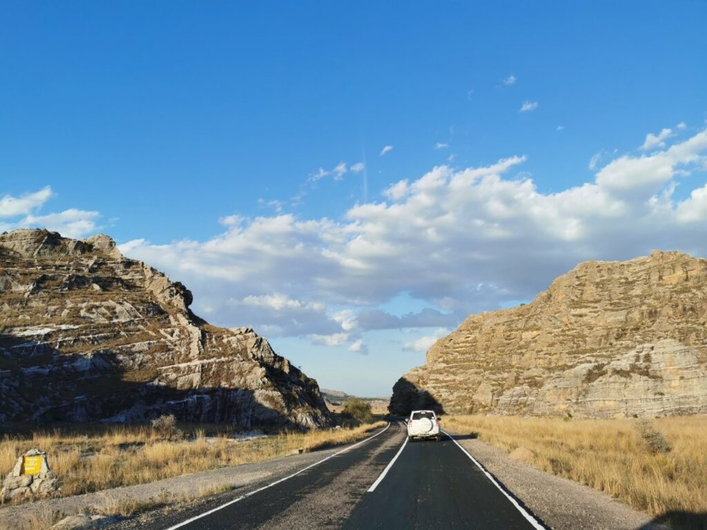 Isalo rahvuspargi maastikud on mastaapsed, taamal kõrguvate võimsate kaljude ja suurte lagendikega.