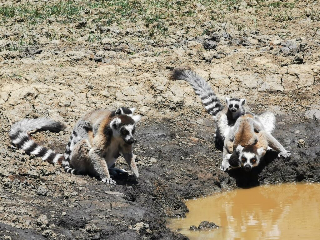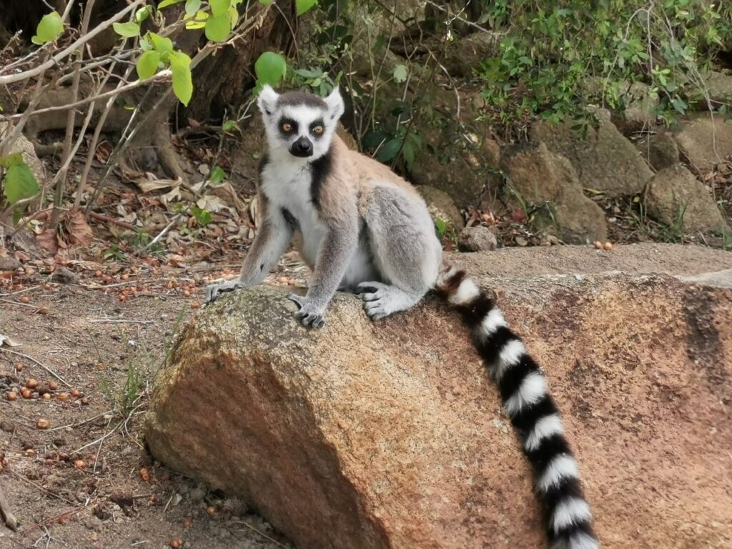 Selleks on valge Sifaka ehk tantsiv leemur, kes liigub naljakalt üks külg ees tantsiskledes ja üles- alla hüpeldes. Siinses piirkonnas on ta ainuke isend ning giidi jutu kohaselt käivat just hetkel ka hoogsad paarilise otsingud. Mõned sajad meetrid edasi kohtume ka rõngassaba leemuritega. Neid on juba hulgalisemalt. Oktoober on poegimisperiood ning mitmel leemuril on pisikesed pojad selja küljes rippumas.