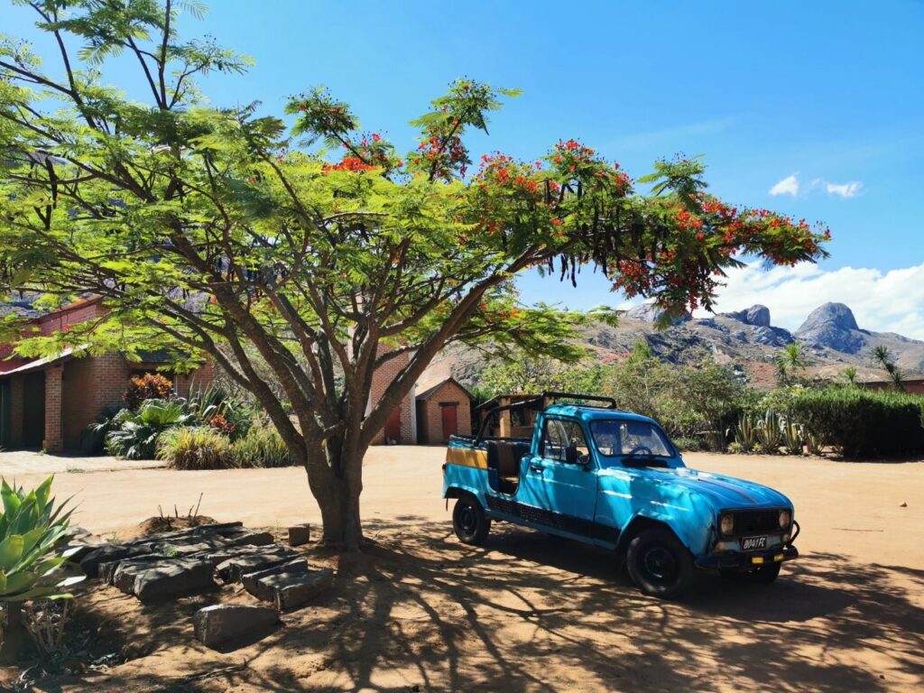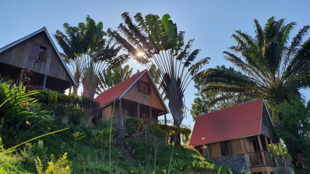 Ranomafanas peatume väga eksootilises ööbimiskohas, mis on rajatud kõrgele mäenõlvale otse rändurpalmide vahele. Need on ülimalt eksootilised lehviku kujulised palmid, mis kasvavad vaid Madagaskaril ning mille kontuurid ehivad ka Madagaskari lippu.