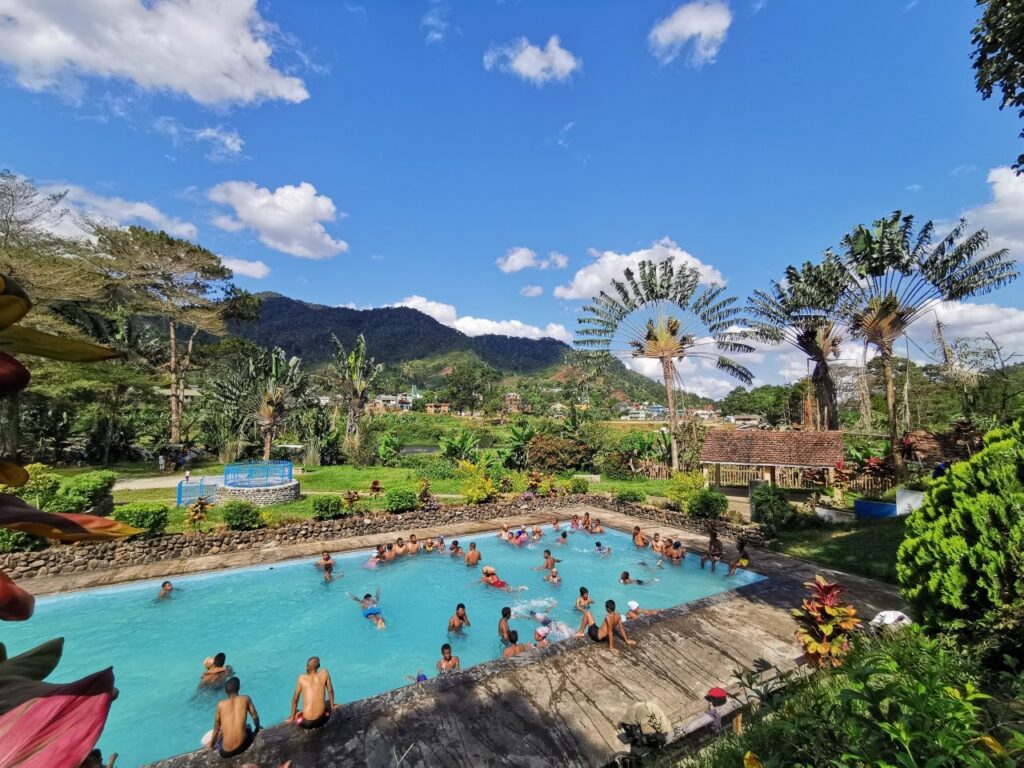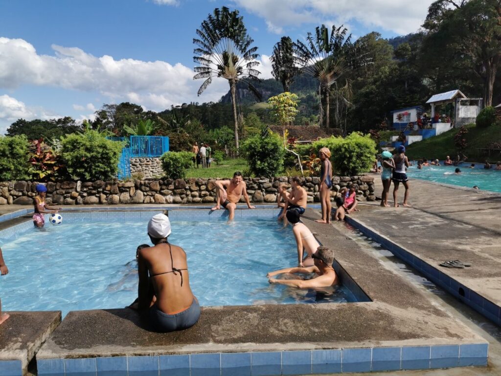 Pealelõunase aja vedeleme kohalikus basseinis, kuhu koguneb vesi kohalikest kuumaveeallikatest. 40-50 kraadine vesi on suure kuumuse käes üsnagi äkiline, aga siiski heaks lõdvestuseks. Vesi sisaldab korralikus koguses väävlit, mis peopesadelt naha kooruma paneb.