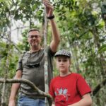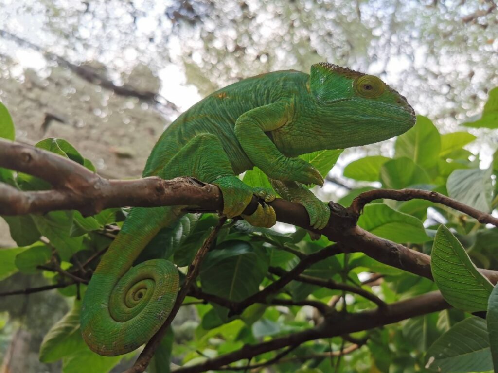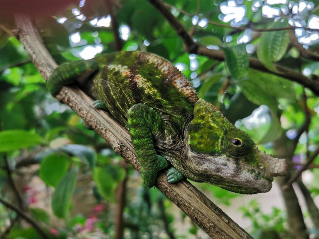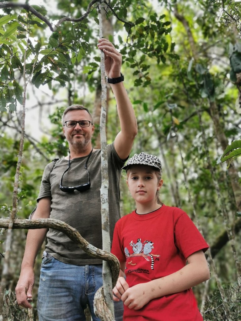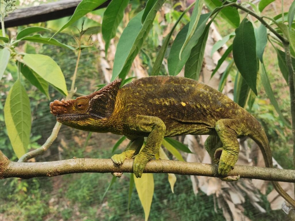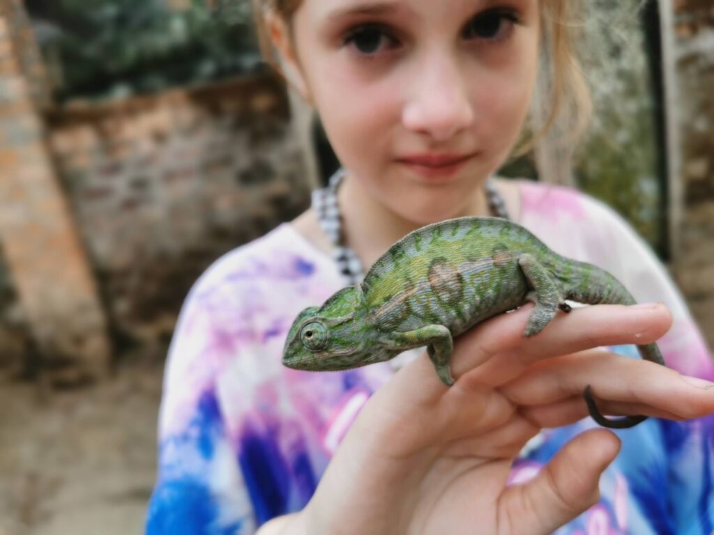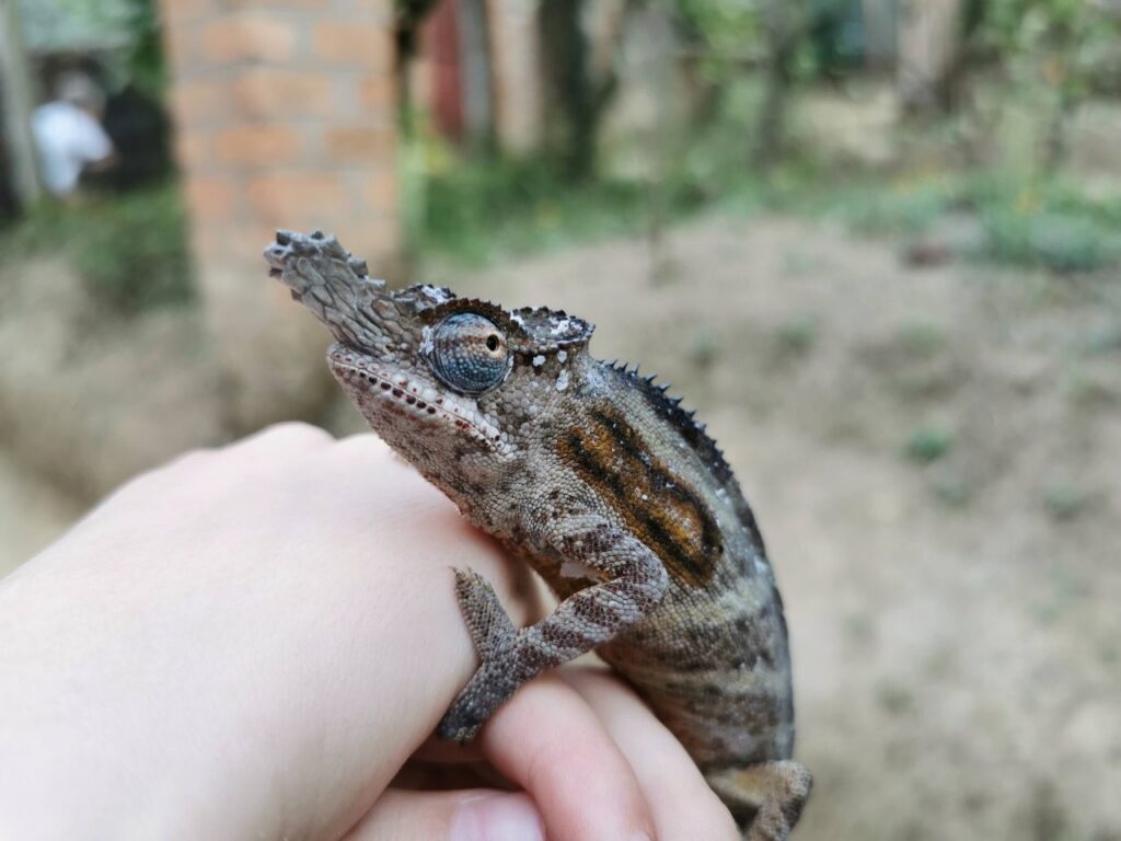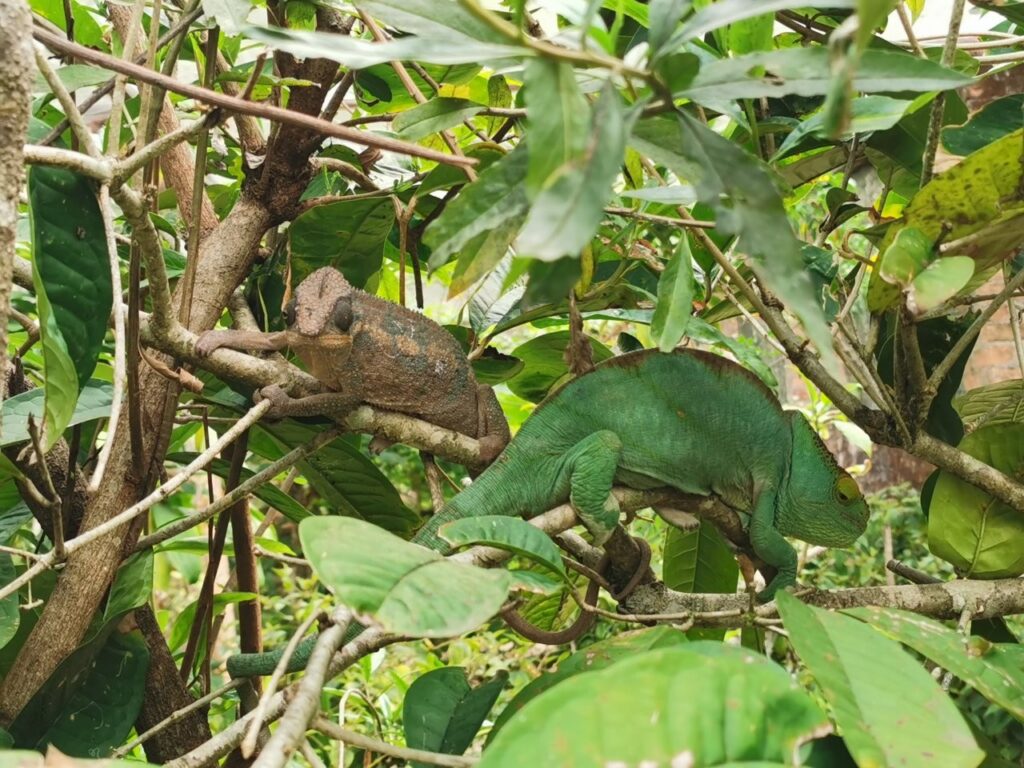 Reisi lõppu olime jätnud 2 päeva varuaega juhuks kui ei jõua õigeks ajaks pealinna tagasi. Õnneks püsisime ajaplaanis ja see andis meile võimaluse võtta ette lisaplaan ja teha ring ka Andasibe rahvuspargis. Tee peal külastame kameeleonide reservaati ja see on eriti lastele tõeliselt vahva kogemus. Pargis on kokku üle neljakümne erineva kameeleoni ning nad on tõepoolest väga-väga atraktiivsed. Looduslik evolutsioon on voolinud nad oma igapäevase elukeskkonnaga nii ühte nägu, et nende märkamine on ettevõtmine omaette. Erinevaid värvitoone on servast serva ning mis kõige huvitavam, nad ei pelga ja tulevad julgelt su peale jalutama.