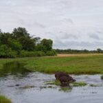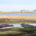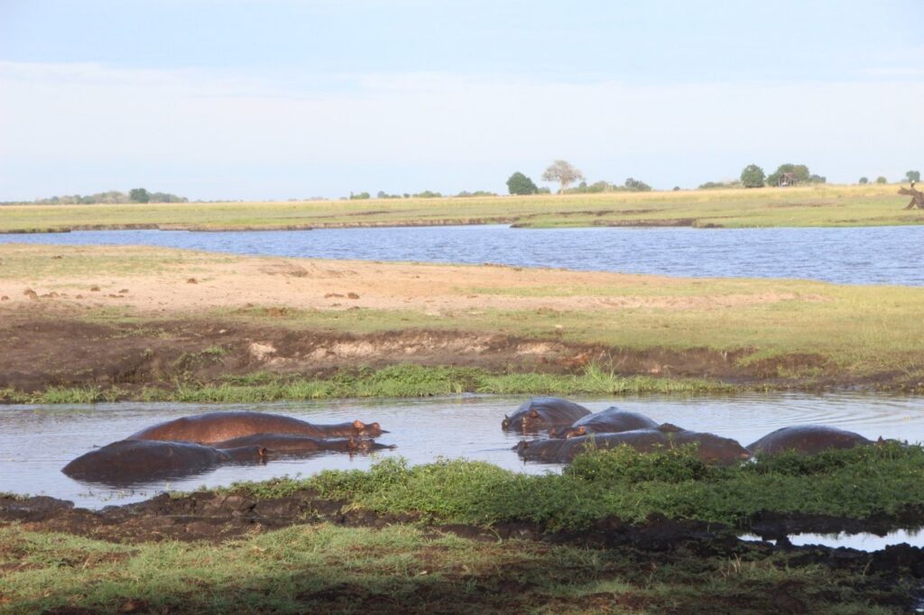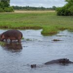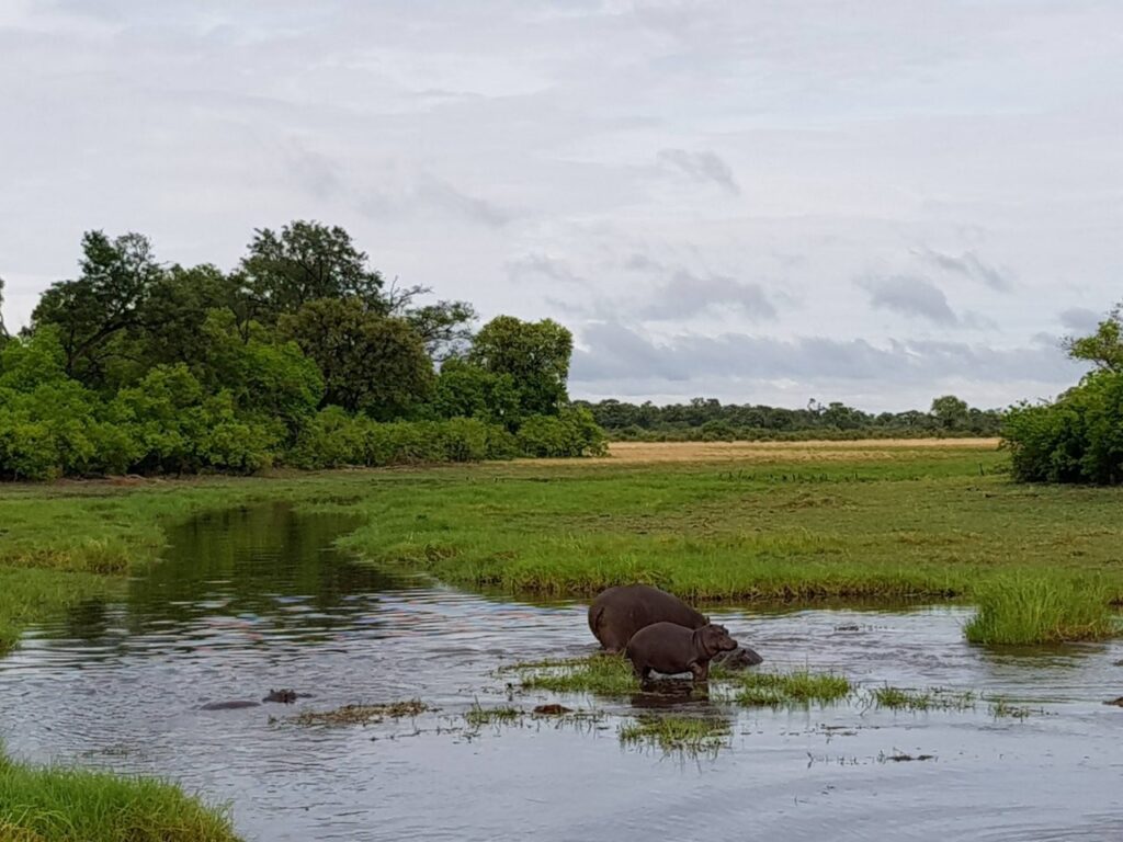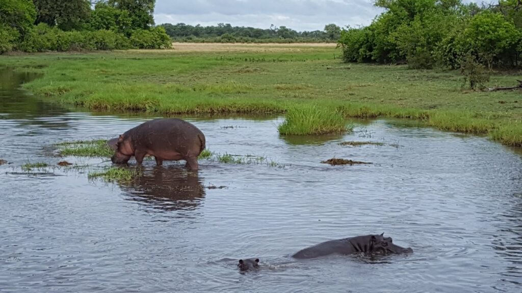 Vaatepildile lisavad vürtsi juurde mõlemal pool silda vett puristavad jõehobude pered. Sealhulgas ka väga nunnud pisikesed jõehobu pojad. Jõehobu, nii süütu ei olegi kui ta paistab, tegemist on tegelikult Aafrika kõige ohtlikuma loomaga. Tema territooriumile sattumine lõppeb pea alati sissetungijale lõugade vahele sattumisega ning eriti siis, kui ta on sel hetkel koos oma poegadega. Ohtlikkuselt teine on üllatuslikult pühvel. Nende eripäraks on see, et kumbki, ei jõehobu ega pühvel, ei hoiata enne rünnakut ette ning nad lähevad alati lõpuni välja, kuni ohver on surmatud.