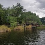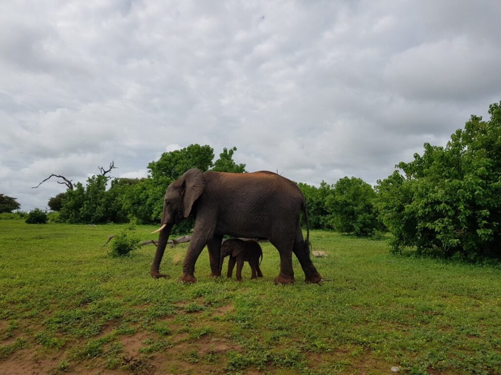 Aega on kulunud omajagu ja õhtuti pimeneb siin ruttu. Esimesed kuuskümmend kilomeetrit kulgeb asfaltteel, mis muutub peagi kruusateeks ning seejärel liiva põhjaseks ja laineliseks üles-alla kõikuvaks kitsaks mudaliivaseks teerajaks. Pargi lõunaväravast edasi on juba korralikult tunda viimaste vihmade mõjutusi. Enamus teesüvikuid on juba tublisti vett täis ja aukudest läbi sõites ulatuvad veelahvatused ka auto kapotile. Kui alustasime kiirusega 120 km tunnis, siis viimased 40 km kulgeb kiirusel 20 km tunnis. Lõpuks jõuame oma esimesse sihtkohta – Kwai külla. Kämpingu koht on põhjavärava lähedal ning see on meie senise reisi vaieldamatult kõige eksootilisem. Asume kõrgete põlispuude all, Kwai jõe kaldal, otse metsiku ürglooduse keskel. Ei mingeid piirdeaedasid, troopilised linnud ja putukad siristavad ülima intensiivsusega, ahvid kargavad puudel ja teisel pool jõge on lihtsalt muuseas elevant oma õhtust jalutuskäiku tegemas, visates vahelduseks londiga vett taeva poole. Taamalt kostub ka jõehobude puristamist. Väga äge!