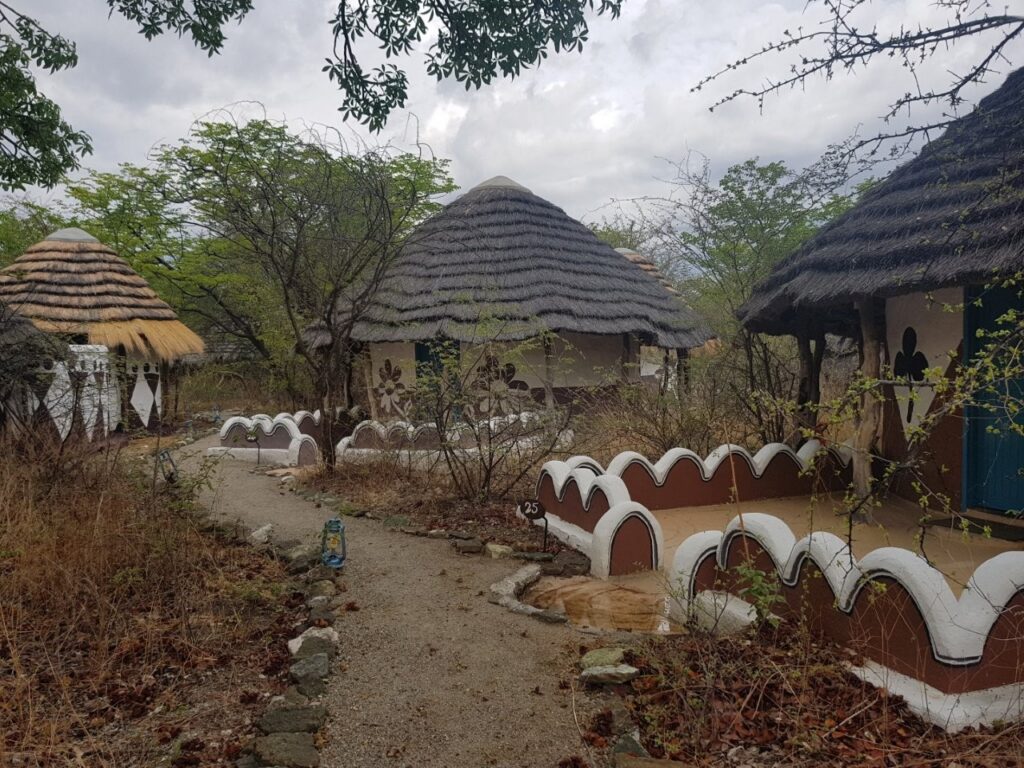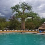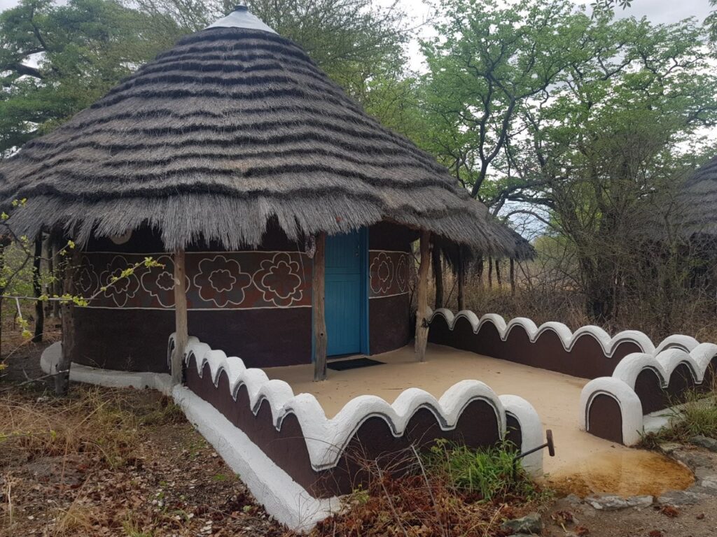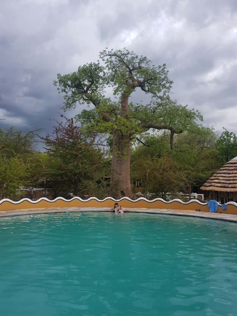 Lõunaks olemegi Gweta lähistel olevas Planet Baobabi nimelises ööbimiskohas. Koht on igati kena ning kuna taevas on taas kiskumas vihmaseks, otsustame upgrade`ida oma kämpingukoha lodge´i vastu. See on küll krõbeda hinnaga aga kuna õige pea saab selgeks, et soolaväljadega tutvumiseks piisab siin vaid ühest ööst ja kuna meil on ette makstud kahe öö eest, siis saame nii vähemalt osaliselt ka järgmise öö arvelt oma kulusid vähendada. Ööbimiskoha osas on lisaks tegemist ka väga autentse Bakalanga hõimu traditsioonide kohaselt rajatud muda hütiga, kus on järgitud esiisade iidseid ehitusmeetodeid. Seinad on määritud traditsioonilises Botswana stiilis lehma sõnnikuga ja kaunistatud termiidi pesadest hangitud looduslike pigmentidega. Silm jääb lausa puhkama. Võtamegi õhtuks tempo maha ning naudime massiivselt võimsaid baobabi puid, käime kohalikus suures basseinis ujumas ja õhtul teeme siinsamas baaris korraliku õhtusöögi.