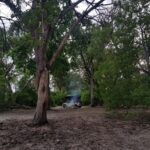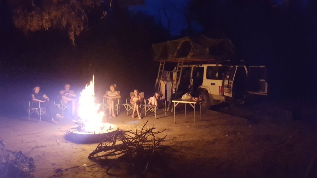 Tõstame telgid autokatusele püsti, teeme kõrgete põlispuude all lõkke üles, nosime tasamisi süüa ja kuulame džungli metsikuid helisid. Kui esimesed rasked vihmapiisad langema hakkavad, poeme telkidesse. Algus on paljutõotav, vihma hakkab vaikselt krõbistama ning looduse metsikud helid lisavad vaid meeleolu juurde.