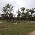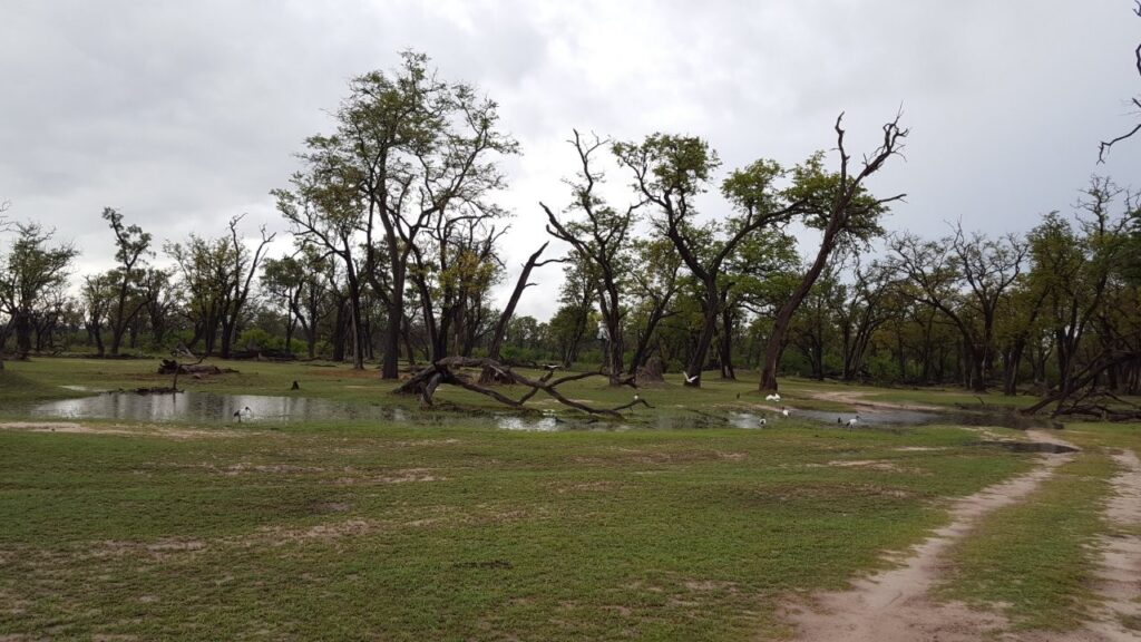 Järgmisel hommikul peame ärkama kell viis, et varahommikuse tuuriga kohe surikaate ja soolavälja vaatama sõita. Kahjuks aga ei taha öö läbi kallanud vihm kuidagi taandumise märke näidata. Kõikjale on tekkinud väikesed jõed, isegi meie majakeste uste ette, kust enam kuiva jalaga välja ei saa. See teeb päris närviliseks, sest siia ju ilmselt teist korda elus niisama lihtsalt ei satu. Seisame Jüriga baarileti ääres teisi safari huvilisi oodates ning märkan letil olevat infolehte, millel kirjas, et kohalik Botswana rahaühik Pula tähendab Setswana keeles vihma. Ning mitte selle tõttu, et vihma siin liiga palju oleks, vaid vastupidi, see on ajalooliselt pigem haruldane nähtus olnud. Pagan küll, et seda just nüüd siis peab liiga palju olema?!