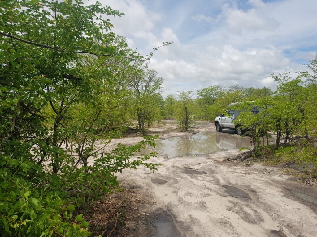 Sild viperusteta ületatud, pöörame suuna Xakanaxa suunas, mis asub vaid neljakümne kilomeetri kaugusel, aga nagu kämpinguvaht hoiatab, siis selle läbimine võtab vähemalt kolm kuni neli tundi aega. Nii ka läheb. Alustavad kümme kilomeetrit sõidame turvaliselt koos sakslastest abielupaariga, keda juba eelmisel päeval Kwai lähistel kohtasime. Alles nüüd eessõitjat jälgides märkame, kui sügavad porimülkad tegelikult on ning kuigi näiliselt abitult, aga siiski vapralt maastur kõigest sellest läbi pureb. Peagi lehvitame neile hüvastijätuks ja jätkame oma teekonda.