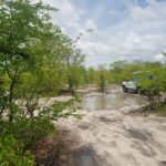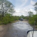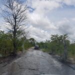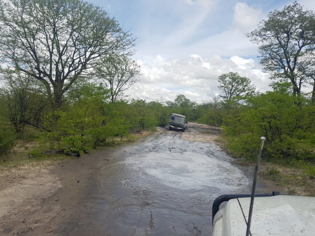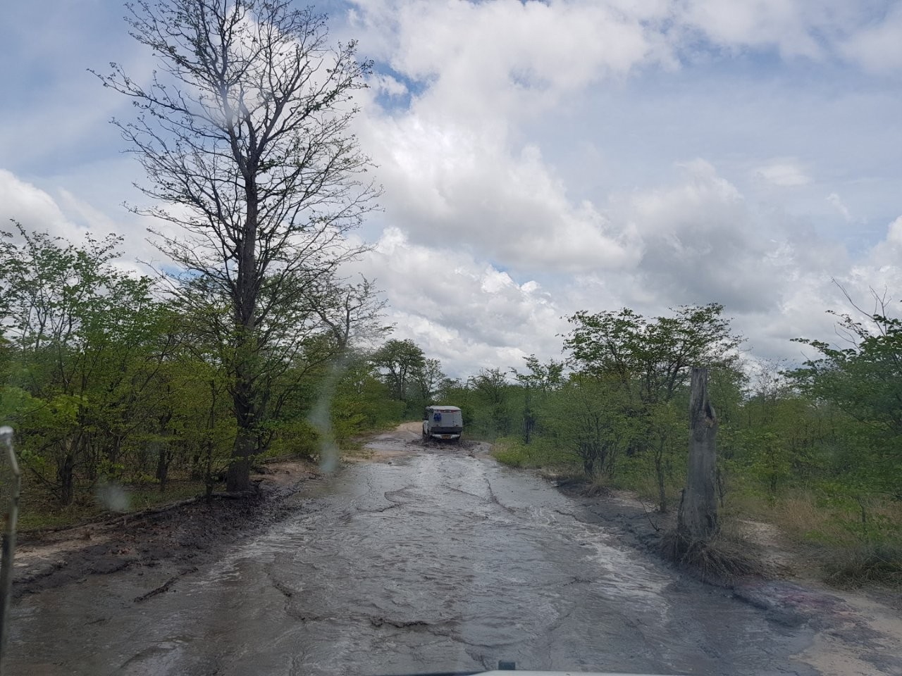Tee kulgeb üles alla õõtsudes ühest veeaugust teise ja nii kogu järgnevas teepikkuses. Selle läbimine on korraga nii elamus kui õudus, tõeline Aafrika katsumus. Auto esiistmetel ei pane pidevat mudaaukudesse sukeldumist enam tähelegi, need aga, kes tagaridades istuvad, muutuvad üha murelikumaks. Eriti Aive, kes iga sügavama augu läbimisel ahhetab ja juba mitmendat korda ettepaneku tagasi pöördumiseks teeb. Ainus, kellele see kõik hirmsasti nalja paistab tegevat on Laura, kelle rõõmukilkeid on kogu auto täis. Iga kord, kui auto järsuma kaldenurga alt sügavamalt mudasesse vette vajub ja vesi lahvatades kahelt poolt auto külgesid mööda pahinal kapotile, sealt edasi esiaknale ja lõpuks üle katuse purskub, tulevad hoogsad hõisked: vägev, lahe, väga vahva, super, suru gaasi juurde! Vägisi meenub reisi algus, kui Laura Namibi kõrbest mammale kirja kirjutas ja selle lõpetuseks mainis: Aafrika on nõme. Tundub, et selles osas on nüüd oluline läbimurre toimunud 🙂