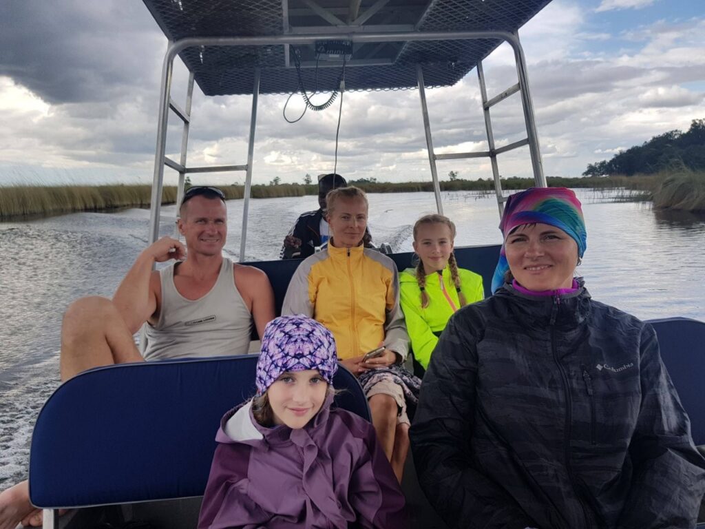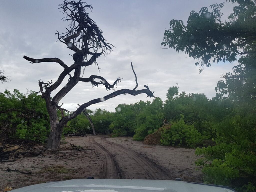 Teeme kohapeal otsuse, et ei riski minna lastega avatud autos vihma käes soolaväljale tuuritama, vaid võtame kohe suuna Maunile, et õhtuks juba Moremi rahvusparki välja jõuda.