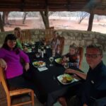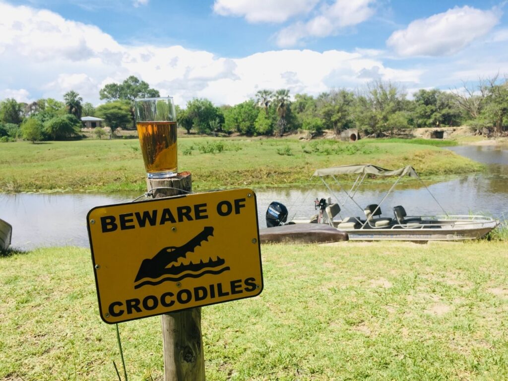 Peale lõunat plaanime minna ka jõereisile, aga täpselt enne paadisõidu algust värvub kogu taevas süsimustaks ning vihma hakkab kallama nagu oavarrest, sellel ei paista lõppu tulevat. Asendame paadisõidu toeka õhtusöögiga kohalikus aafrikapärases restoranis. BBQ searibi ja kanasalat on igati maitsvad, sellele lisab maitset juurde Lõuna-Aafrika Caberne Savignon. Olles nüüd juba mitmeid söögikohtasid külastanud, peab selles osas lisama, et hea kohaliku söögi leidmisega on siin siiski väljakutseline. Söök pole Aafrikas kunagi olnud inspiratsiooniallikaks, pigem ikka ellujäämise vahend. Sestap on kõik vähegi söödav siin enamasti Euroopa toitude eeskujul tehtud.