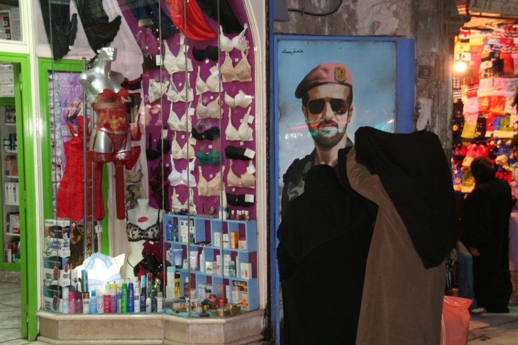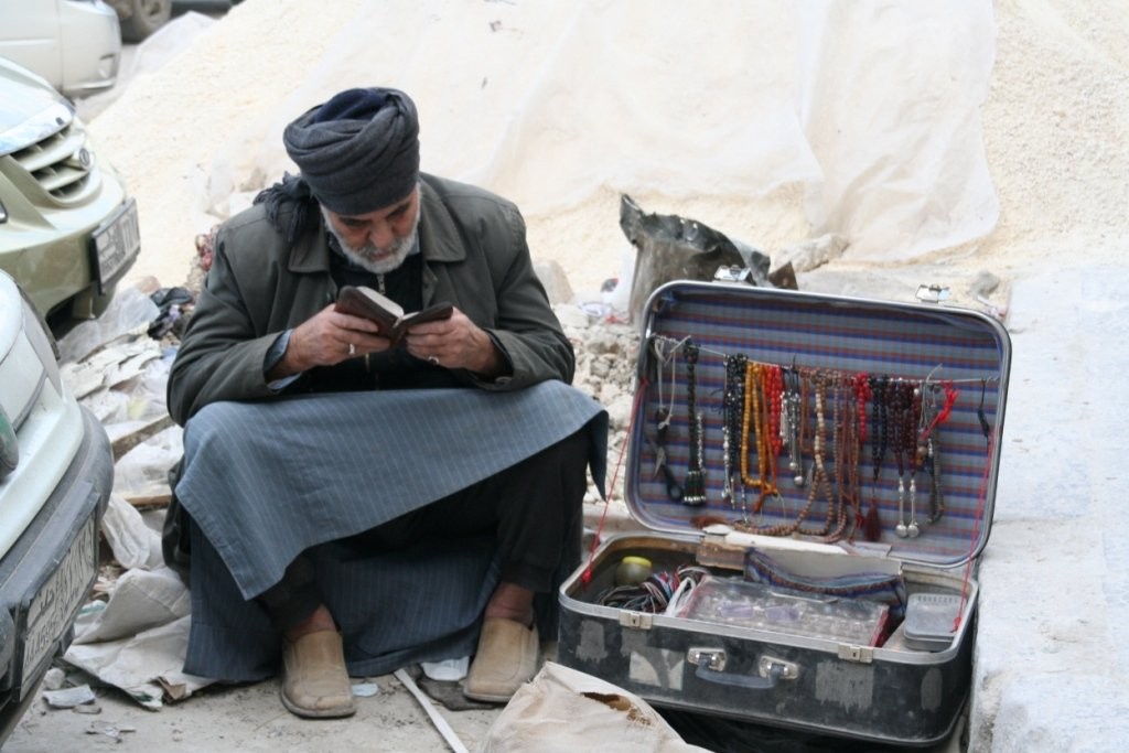 Turismihooaja madalseisu tõttu oli Aleppo turg suhteliselt inimtühi, kauplejad ei viitsinud meie pärast eriti võisteldagi. Hulkusime rahulikult mööda vanalinna kitsaid tänavaid ja tegime kaupmeestega juttu. Üks neist haaras hooga võimalusest ja asus meile loetlema argumente, miks oleks kahepoolse damaskuse laudlina ostmata jätmine meie senise elu suurim viga. „Vaadake, see on ju justkui George W. Bush, selline kahepalgeline ja mõlemalt poolt kasutatav,” lõi kaupmees lauale oma säravaima müügiargumendi. Tema võit.