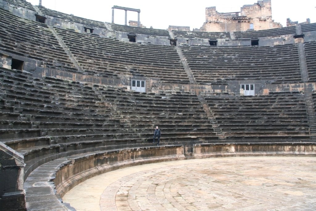 Bosra kõige uhkem pärl on aga tema grandioosne ja senini suurepäraselt säilinud roomlaste amfiteater, mis mahutas omal ajal 15 000 inimest – umbes sama palju, kui täna Viljandis elanikke. Eriline on see aga mitte ainult suuruse, vaid ka välimuse poolest: teater on ehitatud tumedast kivist, mis annab sellele tõsise, peaaegu dramaatilise ilme ja eristab teda teistest heledatest rooma ehitistest. Pole ime, et seda peetakse maailma kõige paremini säilinud amfiteatriks – siin võiks täna sama hästi mõne gladiaatorilavastuse ära teha.
