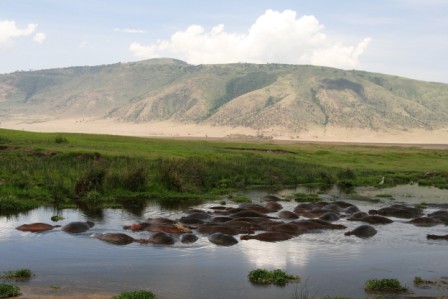 Kraatri sisenemisel avaneb kaugele ulatuv rohelus, mis tundub olevat omaette isoleeritud maailm. Kraatris valitseb omaette mikrokliima, tänu millele on siin võimalik aastaringselt kohata erakordselt rikkalikku loomastikku. Nägime nii pühvleid, sebrasid, gnuusid, hüääne, lõvisid ja isegi musta ninasarvikut. Veekogude ääres mulistasid ka jõehobud ning roostikus peitsid end flamingod.